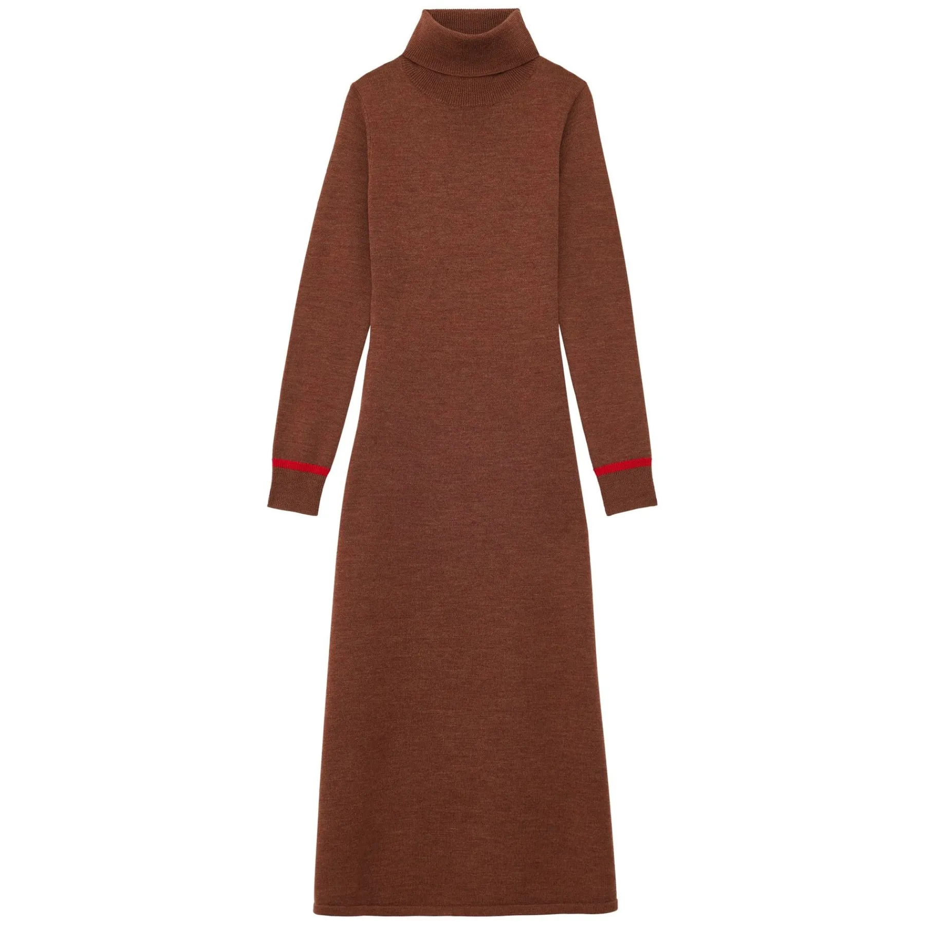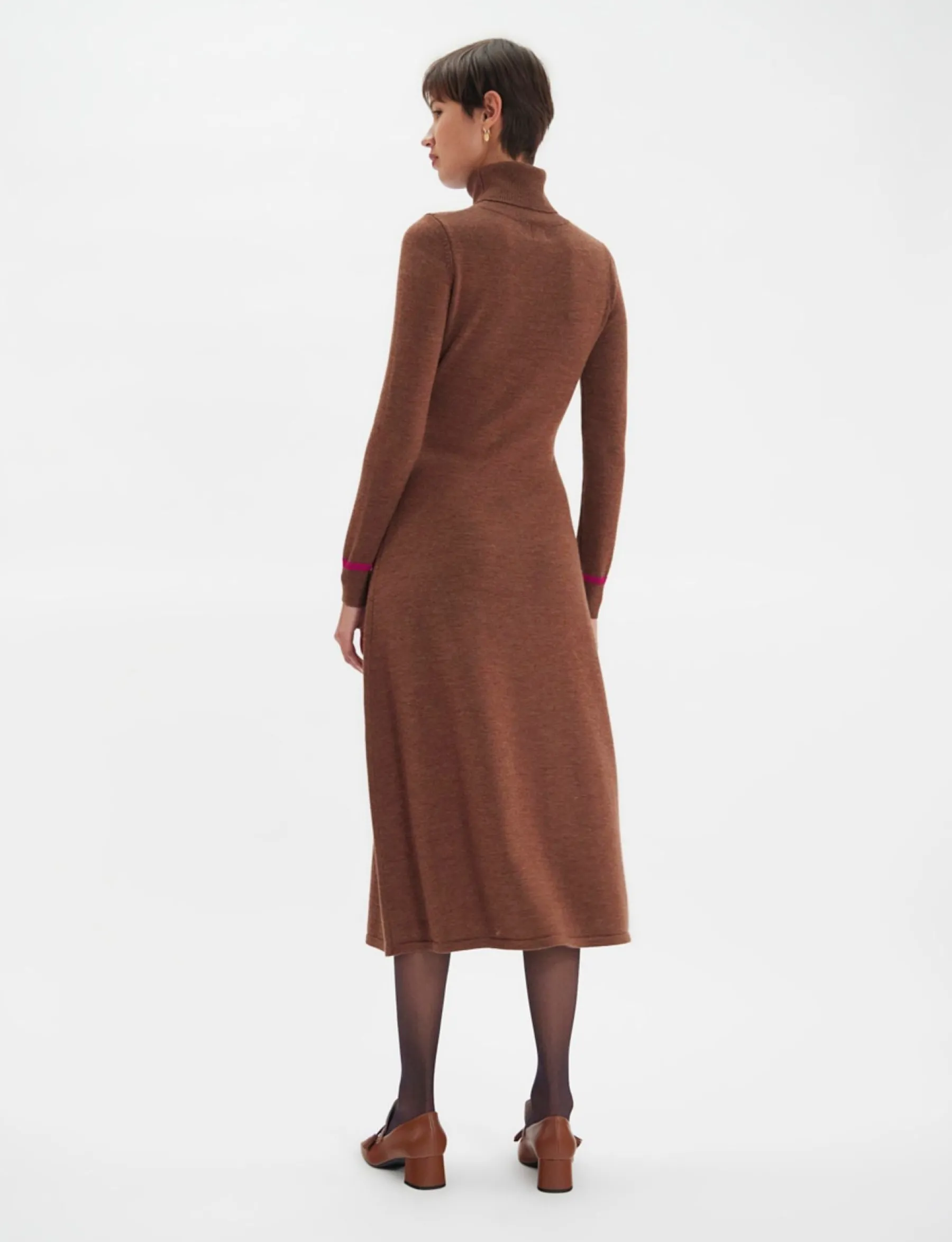 Best Ines de la Fressange Paris Divine brown turtleneck dress with fuchsia trim