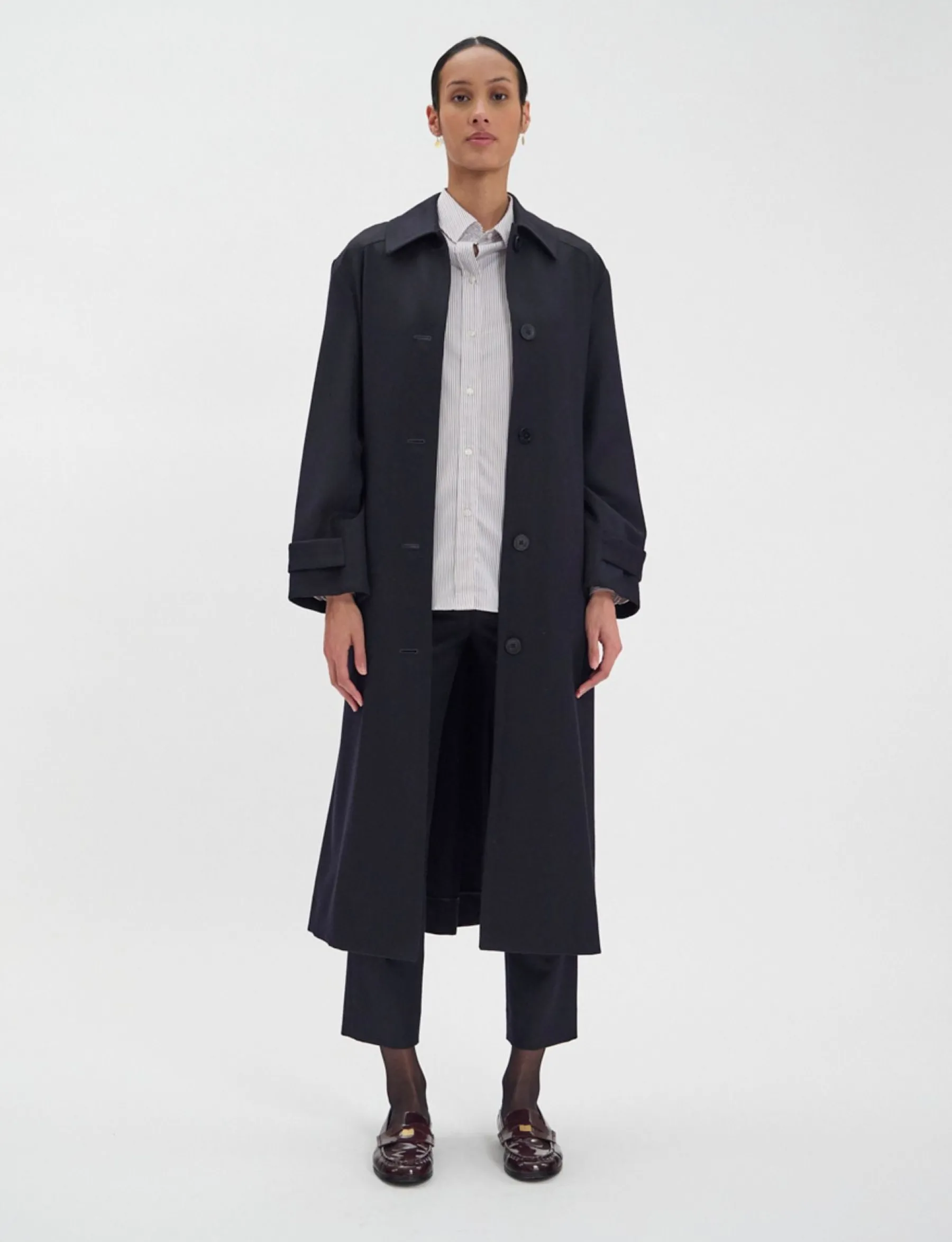 ESME is a coat of great elegance. Its simple, supple cut, waist-enhancing belt and rich, refined fabrics make it a must-have for the autumn and winter seasons.