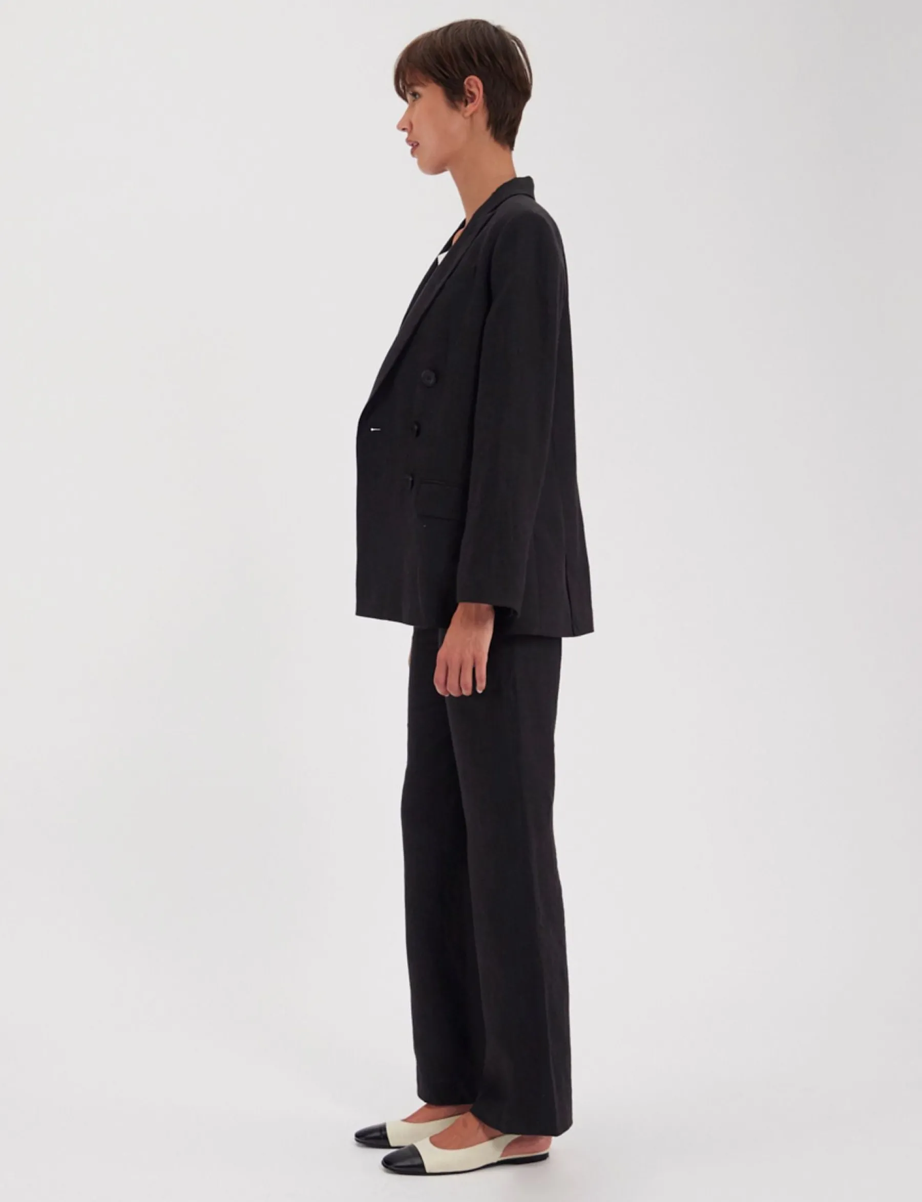 Discover Ezio , a very elegant double-breasted jacket that can be worn open or closed, symbolising Parisian chic. This version is made from linen, the noblest of materials.