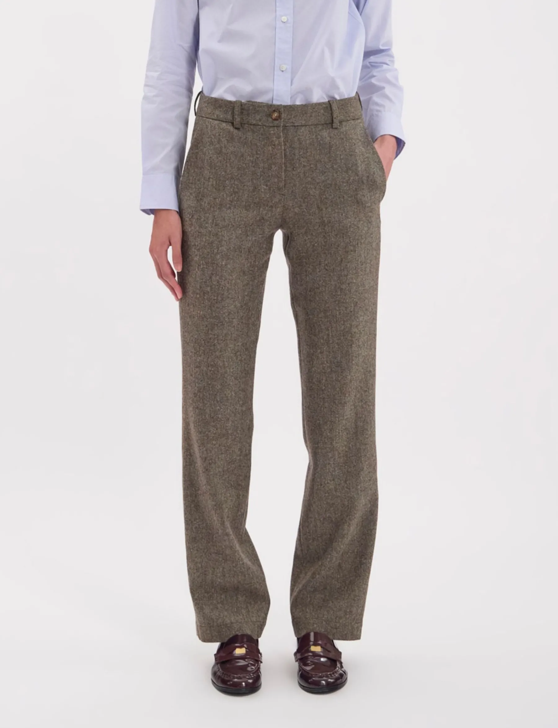 Best Ines de la Fressange Paris Francisco trousers in mottled green wool-blend
