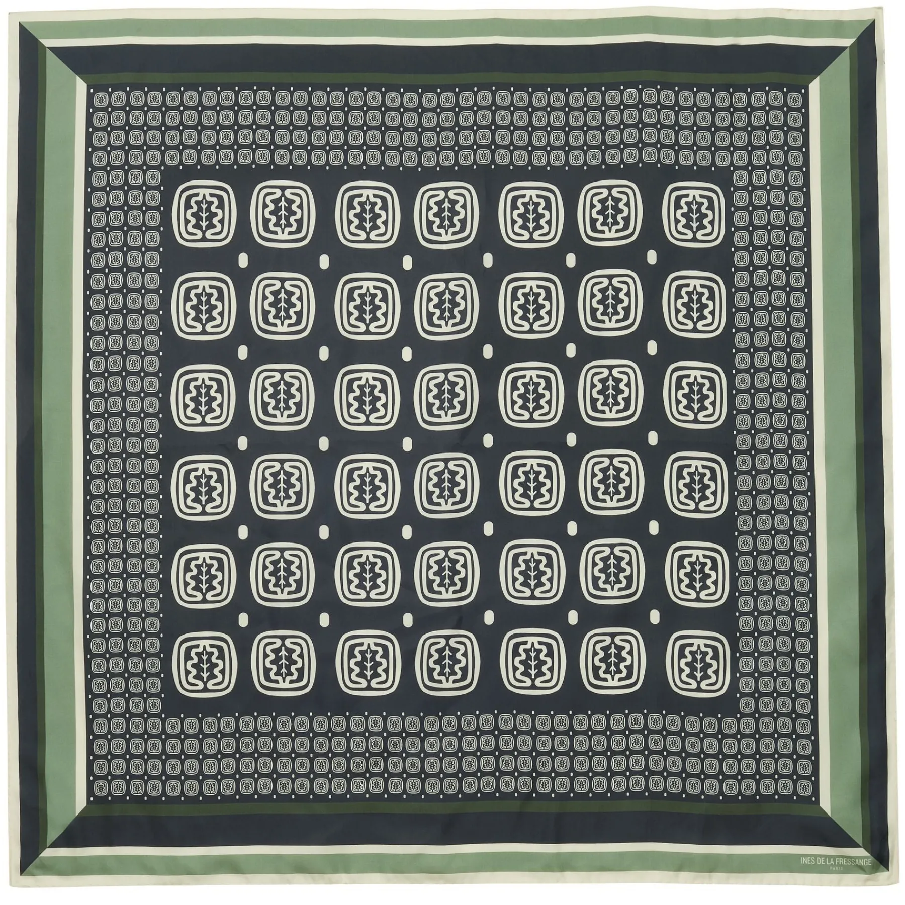 Best Ines de la Fressange Paris Lewis silk scarf, slate-blue and green oak leaf design