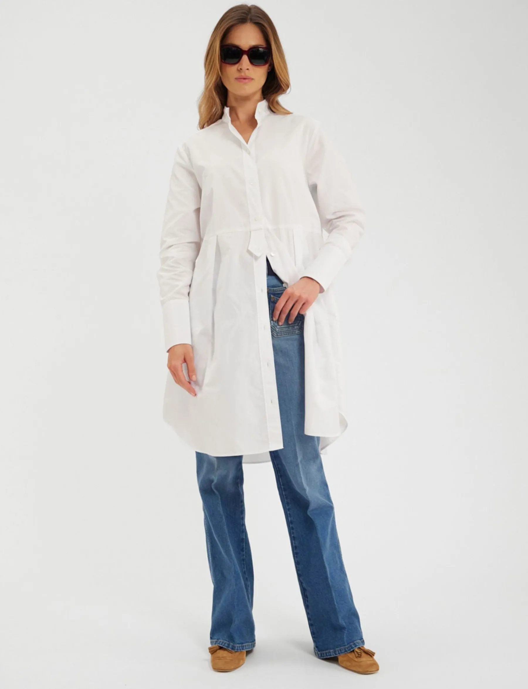 Martina dressOversized cutOfficial collarButton front closureLong sleevesButtoned cuffsFront and back pleat work