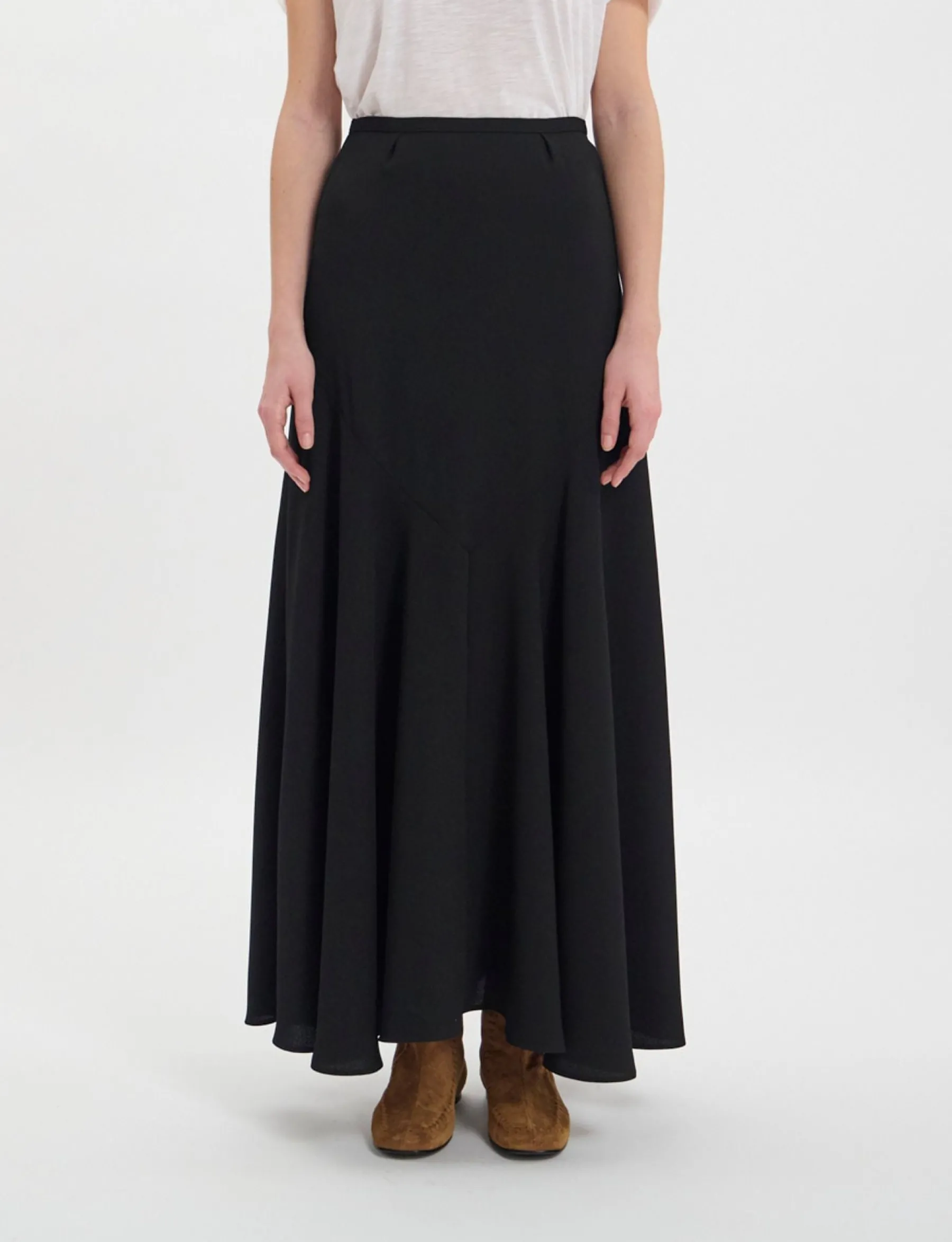 The Velvette Long Skirt is a sophisticated and elegant new style, with its flared cut, flowing fabric, front darts and c…