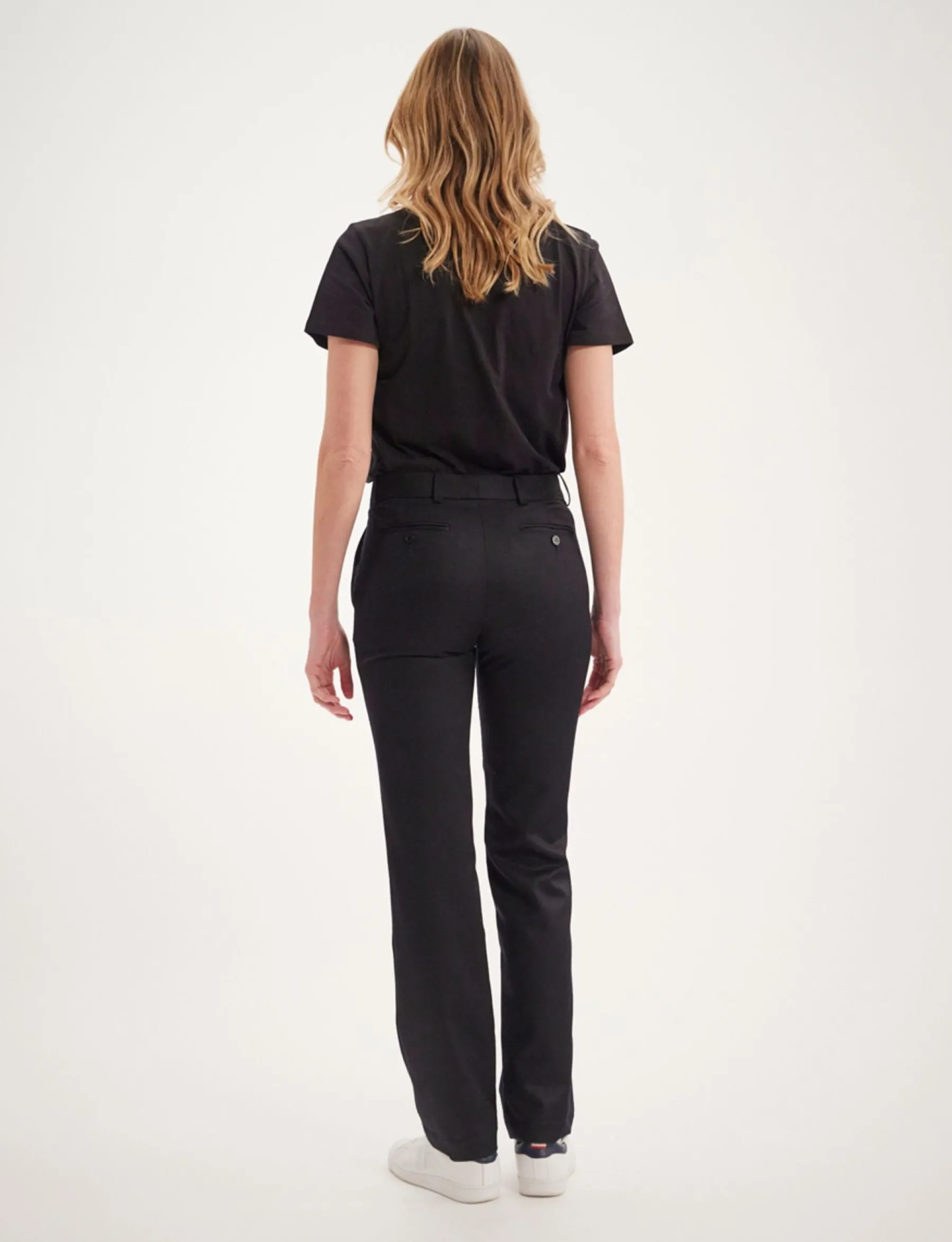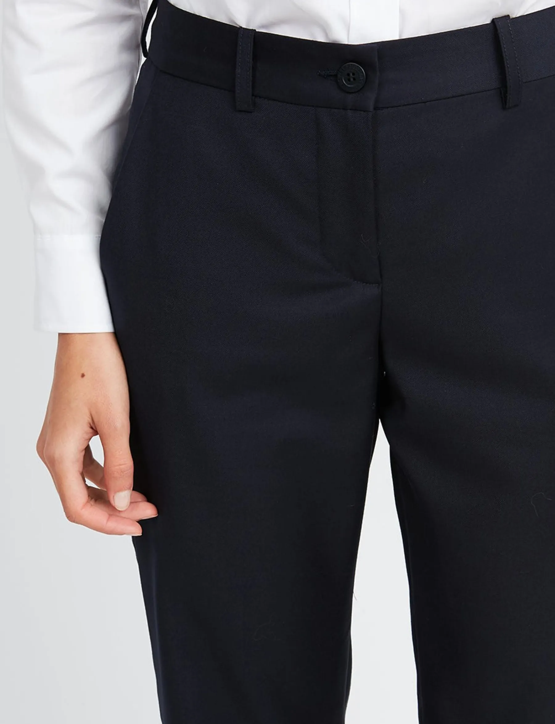 The new Francisco classic trousers in timeless navy blue are the perfect complement to your everyday looks. The straight cut of this wool basic will dress up any figure all year round.