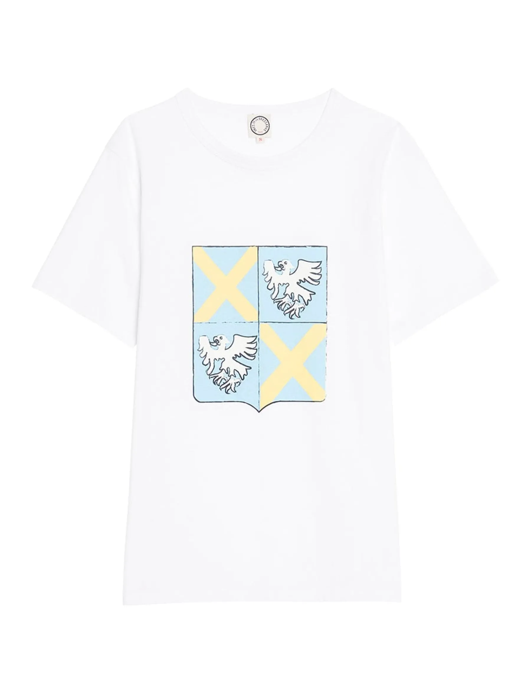 Discover the white Oscar t-shirt with sky blue crest. This cotton t-shirt is original and easy to wear.