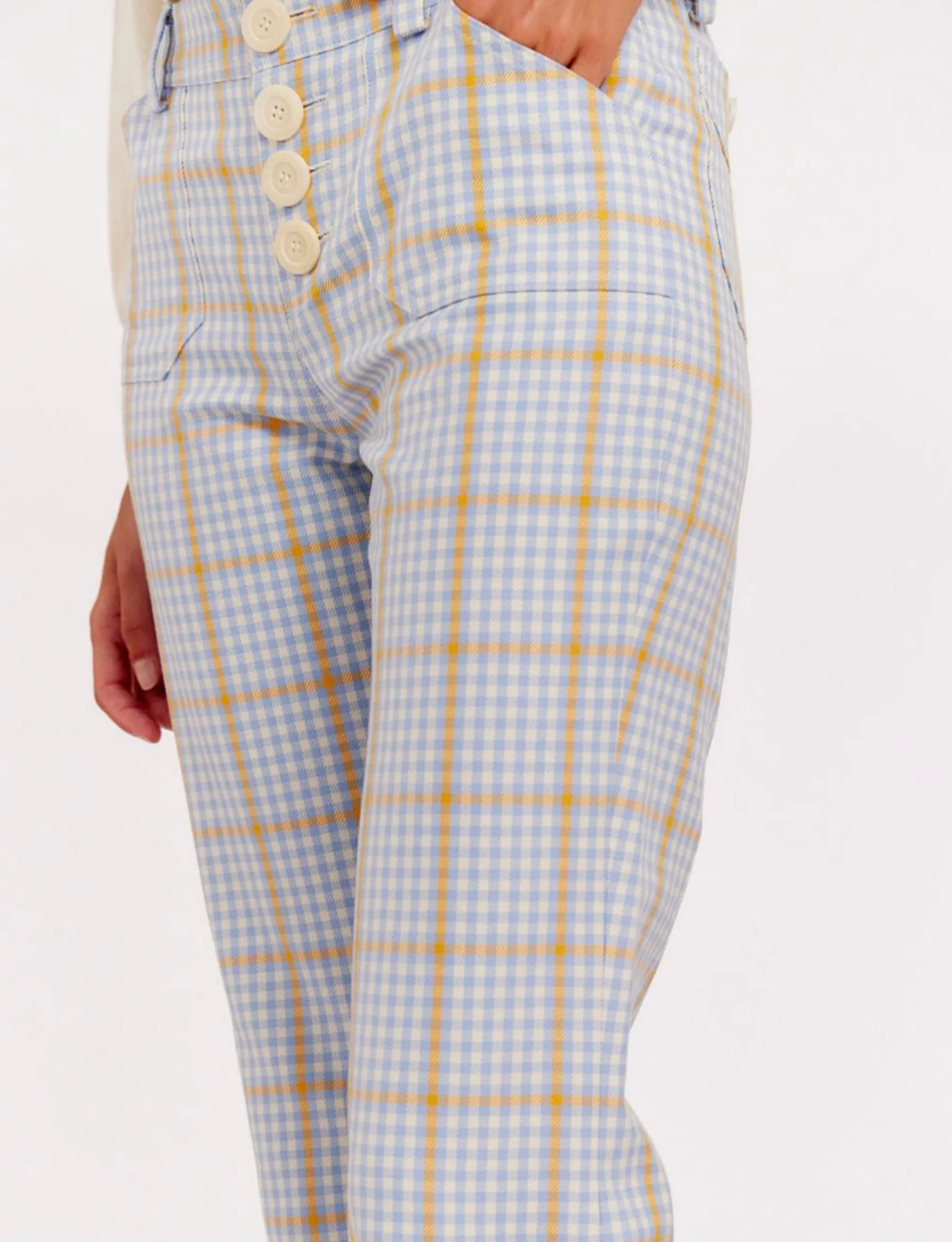 Cheap Ines de la Fressange Paris Charlotte blue and orange checked trousers