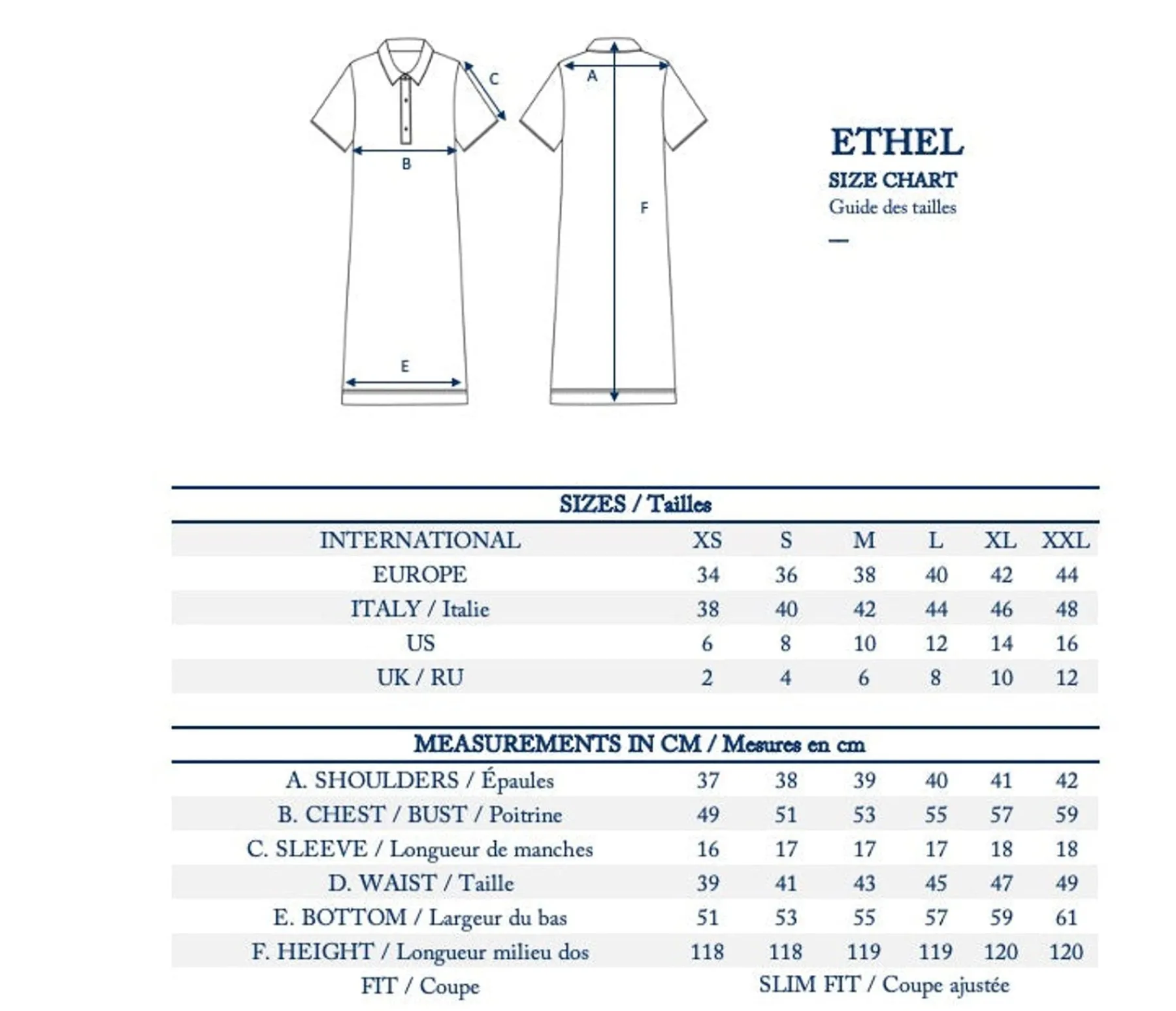 | Size | 34, 36, 38, 40, 42, 44 |