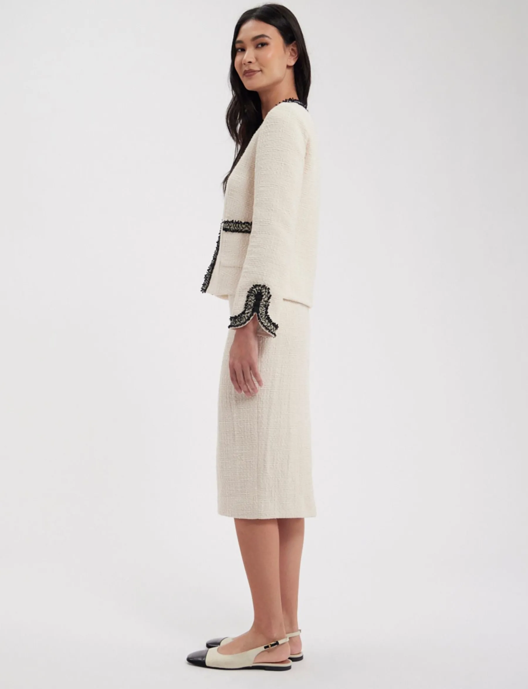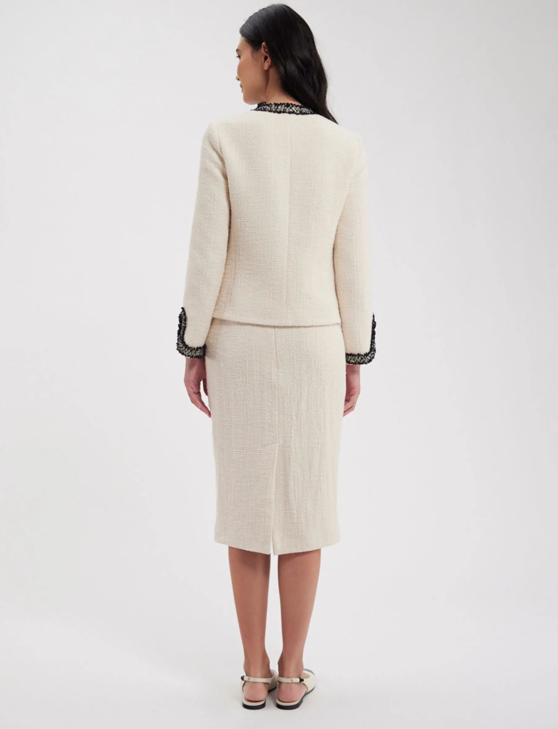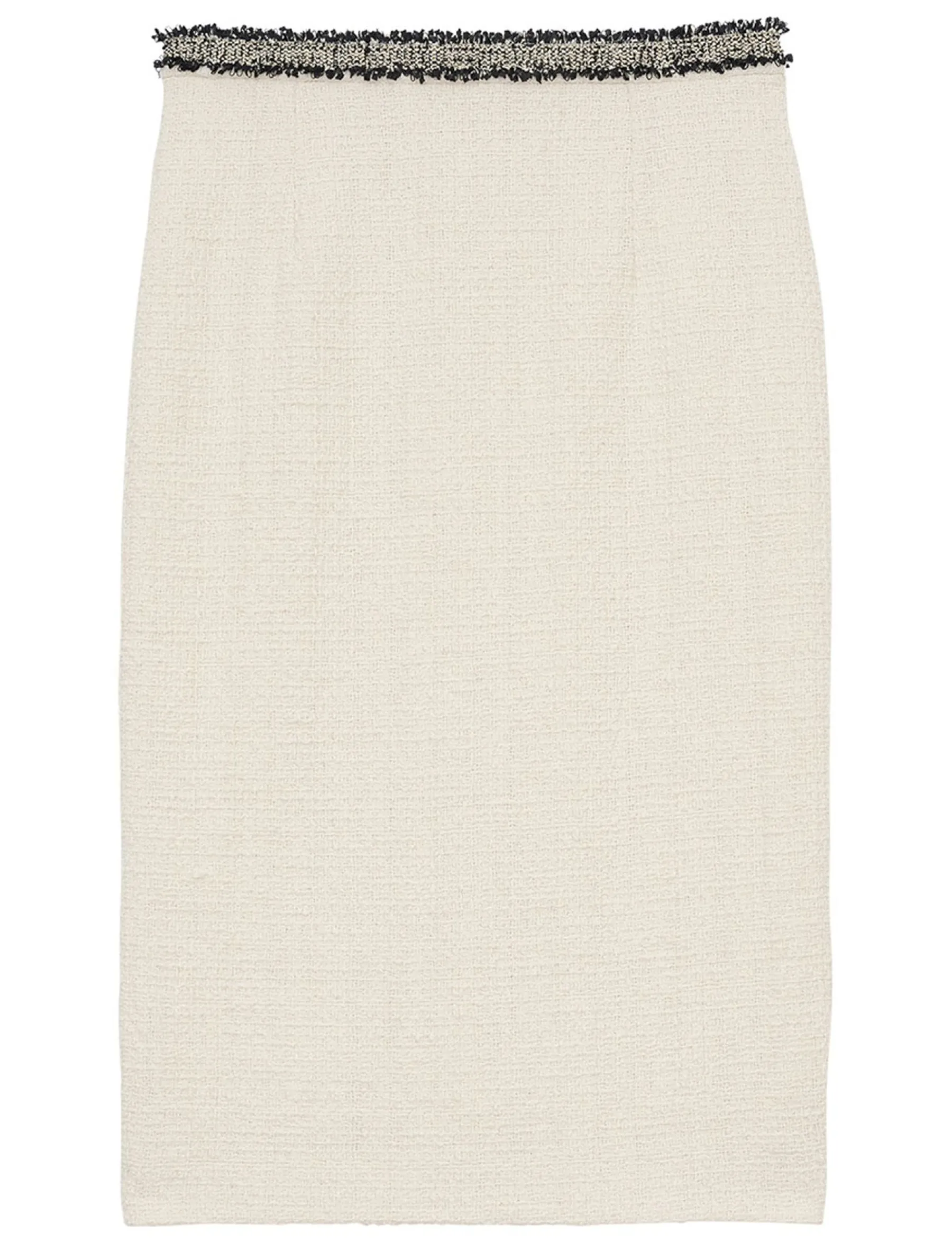 Gabriela is a superb pencil skirt in the chic Ines de la Fressange Paris style, creating a flowing, refined silhouette in a beautiful ecru cotton fabric for comfort and timeless elegance.