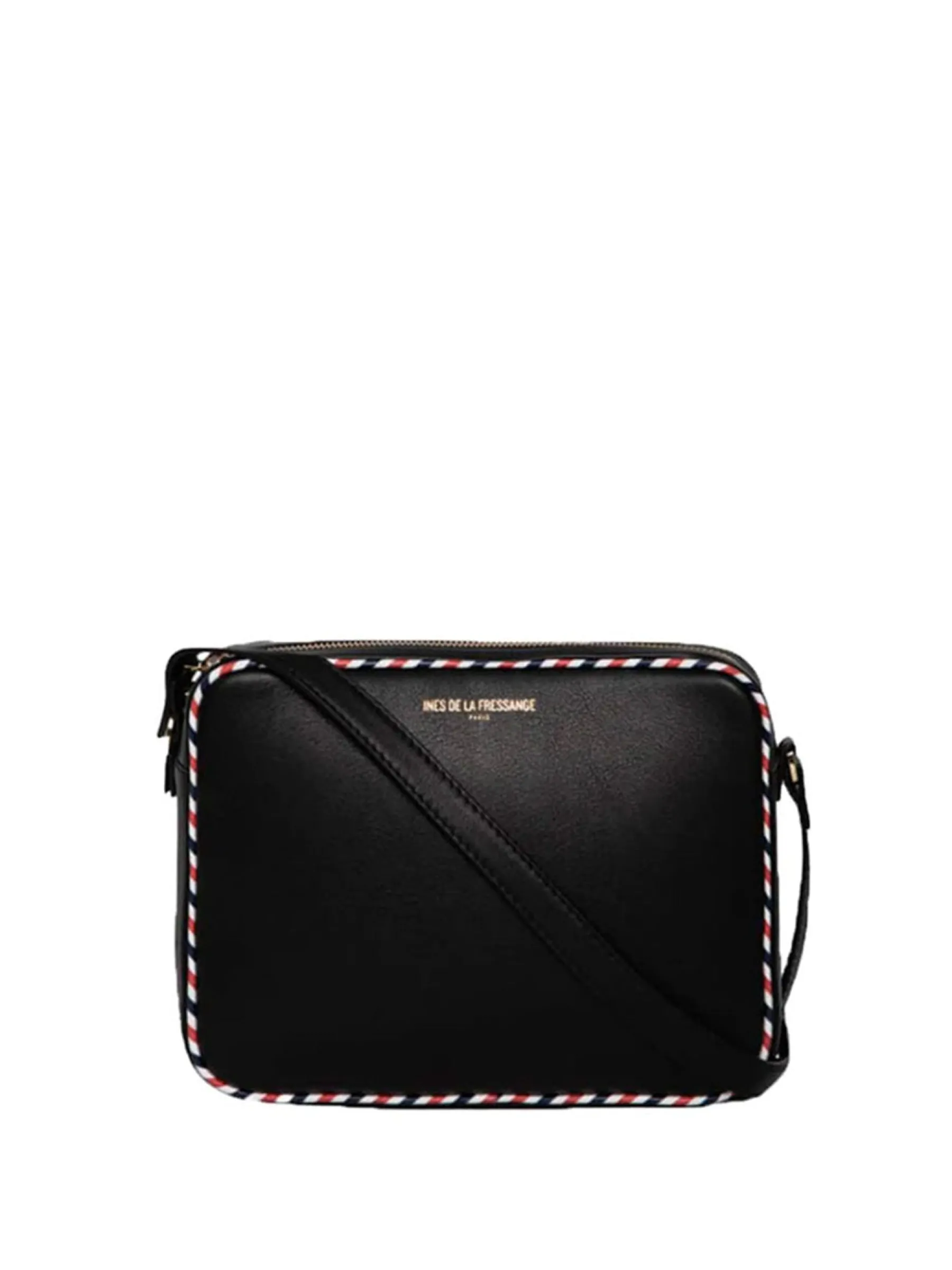 Cheap Ines de la Fressange Paris Marcia bag in black leather with tricolour trim