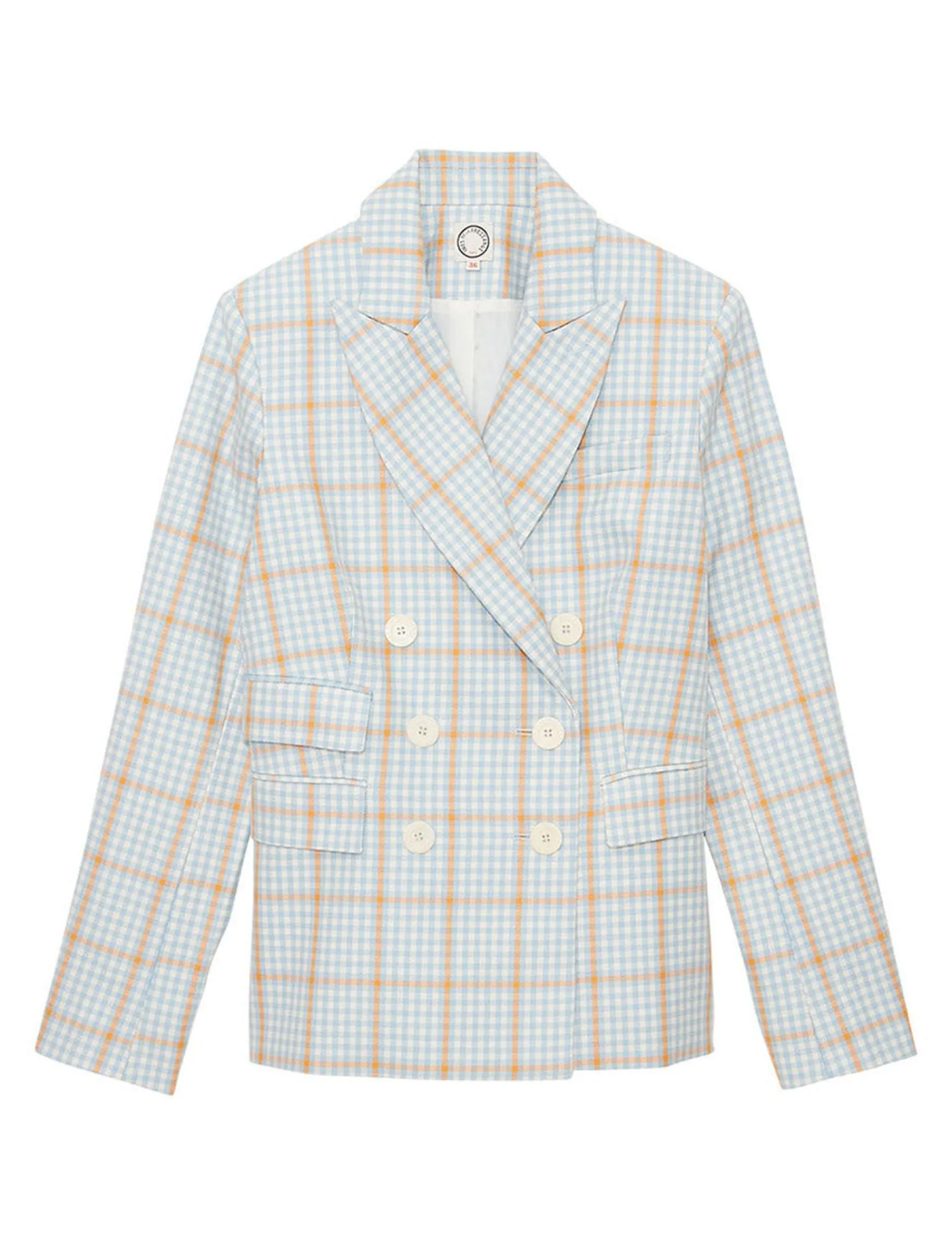 Cheap Ines de la Fressange Paris Maurice blue and orange checked jacket