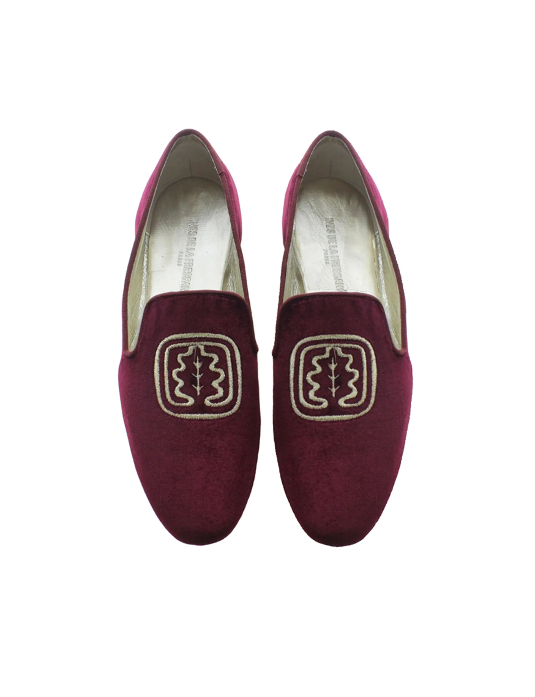You’ll love these pretty embroidered slippers. The originality of their design, combined with the oak leaf embroidered in gold thread, make them a subtle, feminine model that will go perfectly with formal outfits as well as more casual looks.