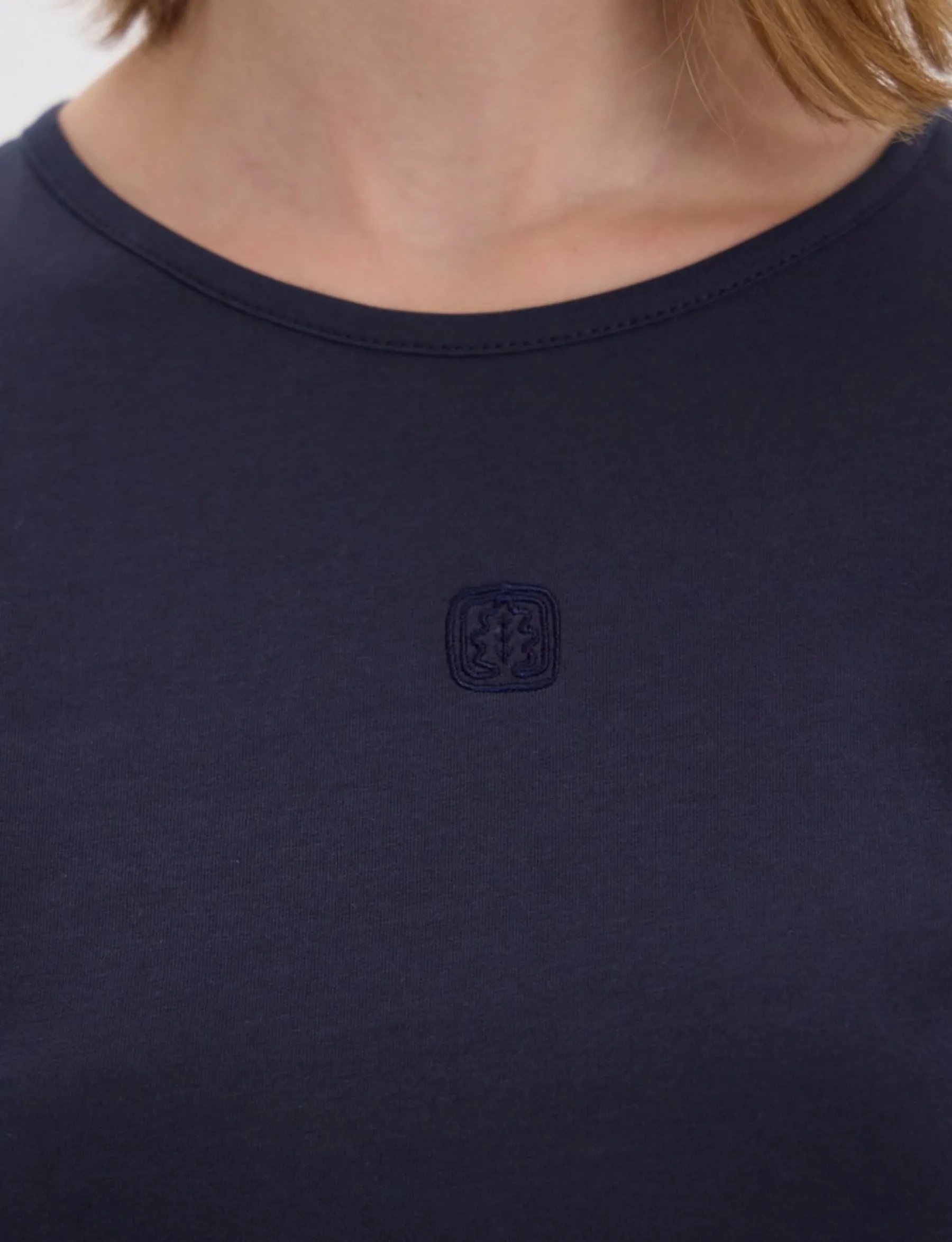 Cindy is a new top with a slightly slim fit, subtle, elegant details like the ribbed texture on the collar and bottom sleeves, and the House signature, our embroidered oak leaf. Made from organic cotton.