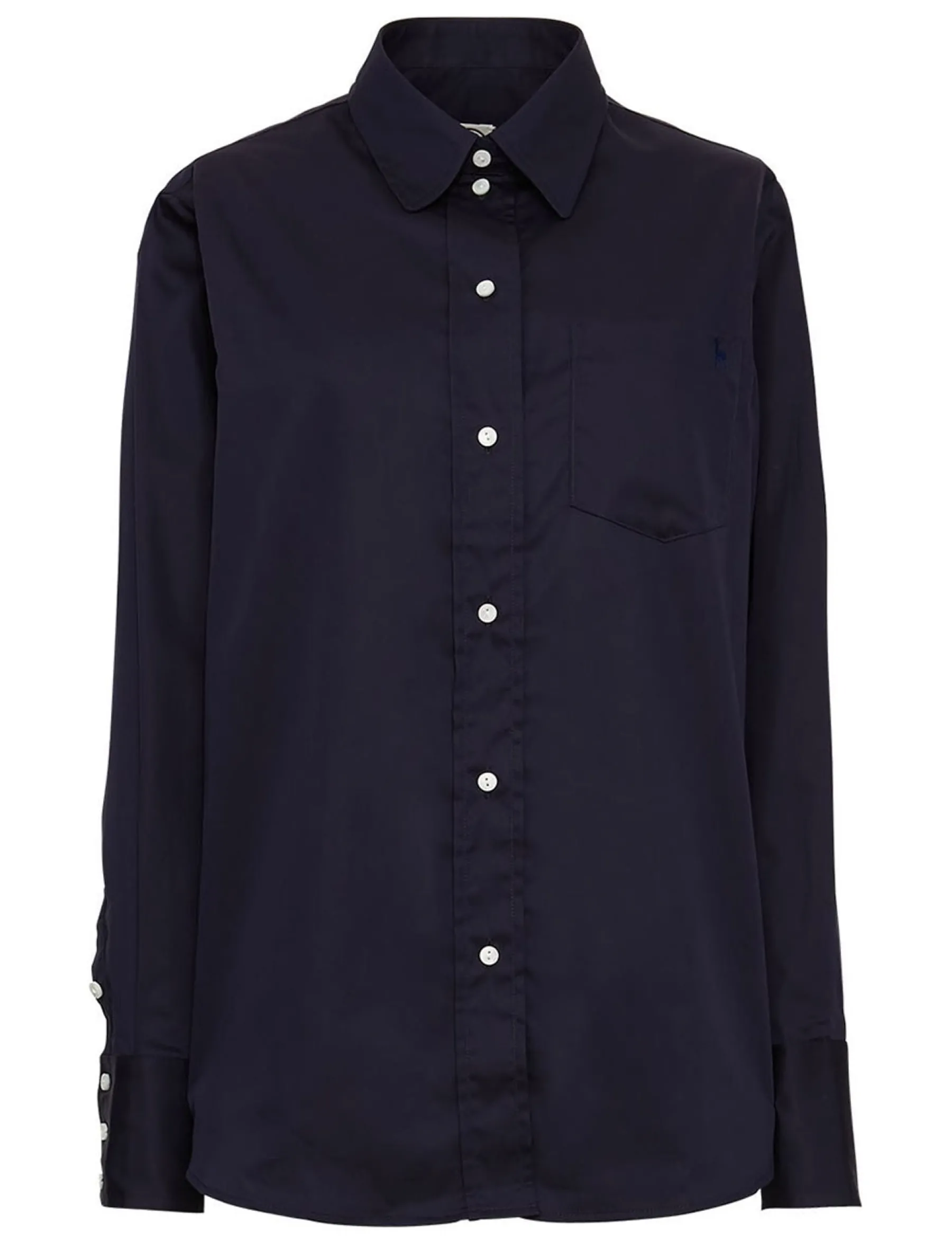 The Maureen shirt, emblematic of the House, with its easy, timeless straight cut will add an elegant touch to all your outfits and complement your wardrobe perfectly. The small embroidery on the chest is a detail that adds to its personality. It’s equally suited to formal or casual wear, and can be teamed with jeans or dress trousers, for example.