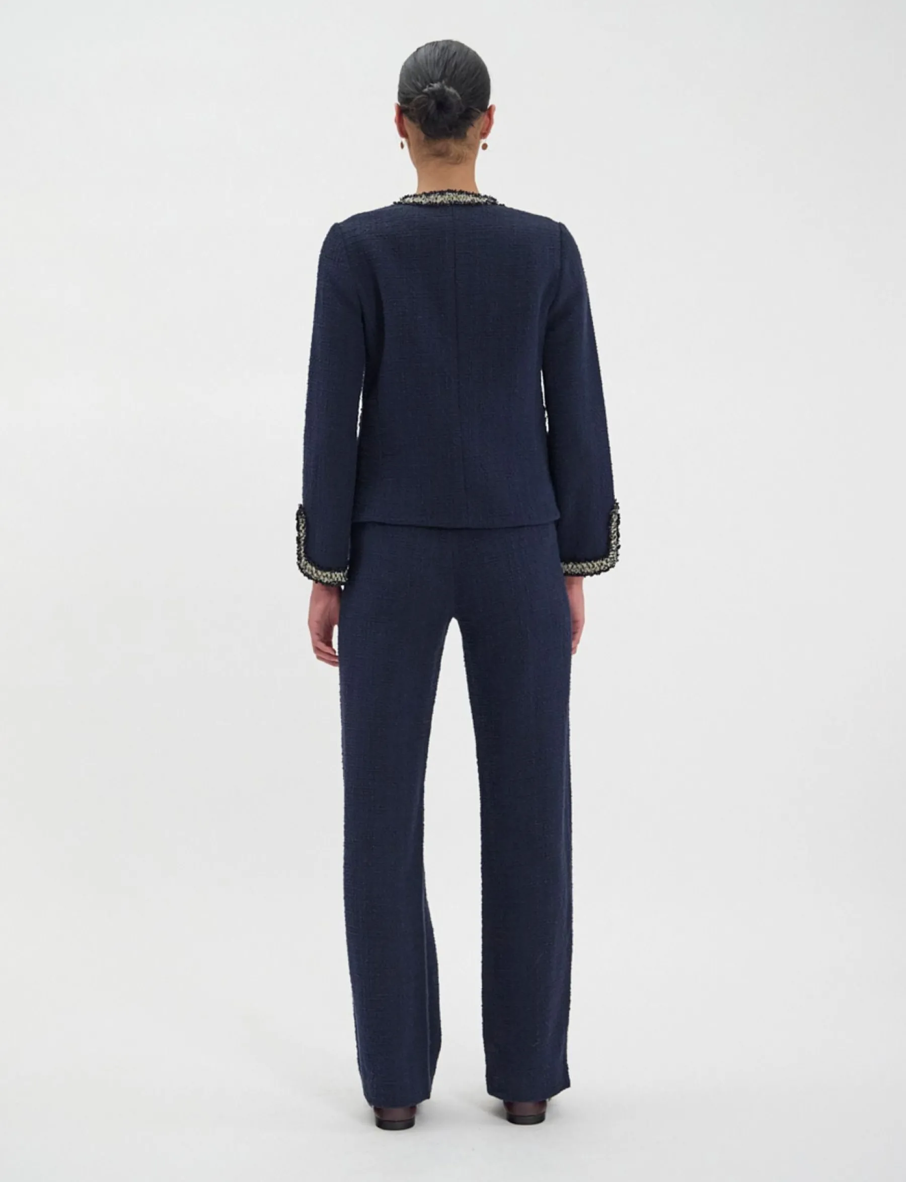 The new Misia jacket is already a classic. Particularly elegant yet extremely comfortable, its straight cut is accentuated by a braid, hand-applied in the traditions of sophisticated craftsmanship, giving it an irresistible allure. Sober yet dressy, it’s perfect for day or evening, dressing up any figure and always looking glamorous. It’s the perfect embodiment of French elegance.
