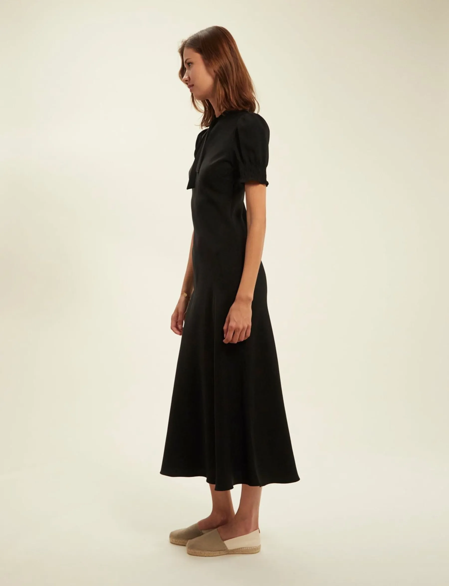 The black Cerise dress is a manifesto of elegance. Its cut and many finely-worked details, in particular its bow-tie teardrop collar, will make it your ally at all your summer events, no matter how dressy.