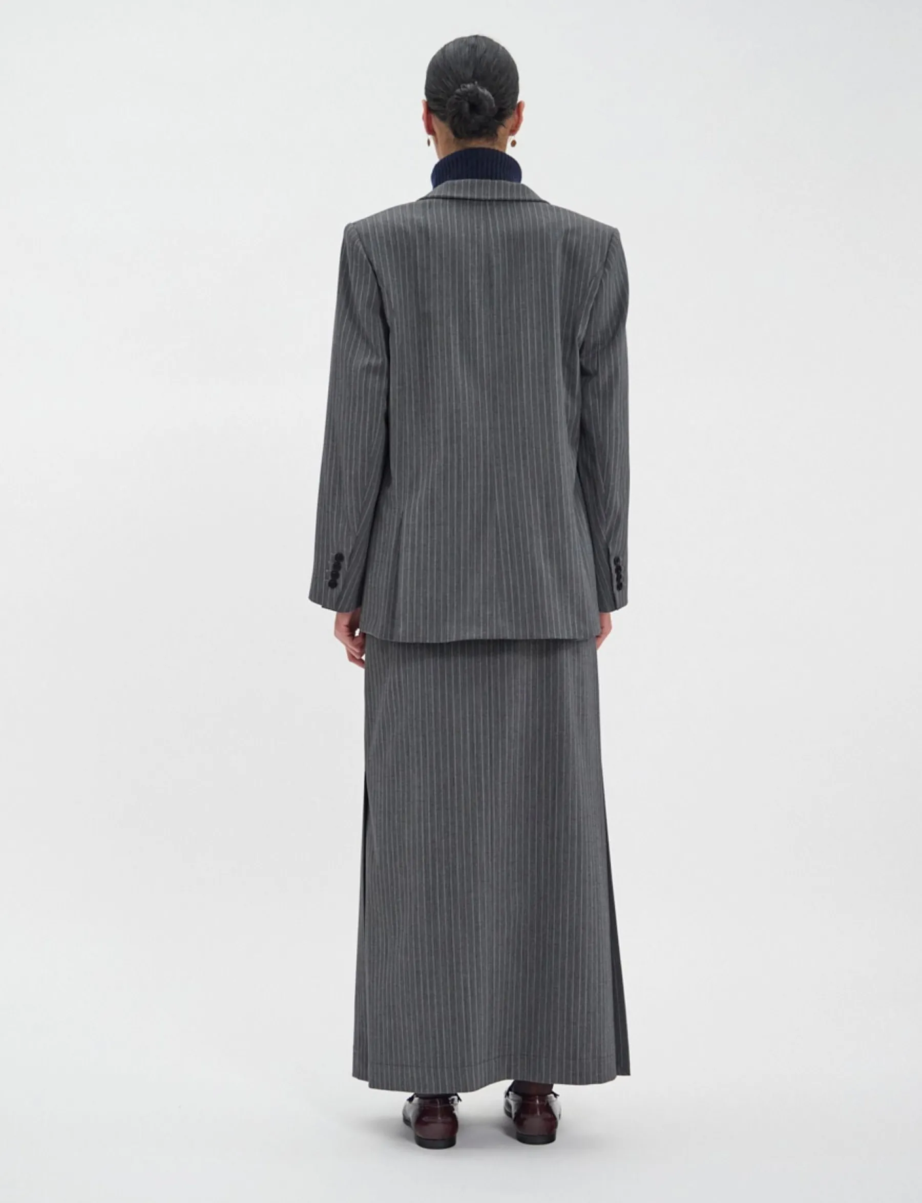 The Bruna jacket is a benchmark for the brand, the perfect blazer designed by Ines de la Fressange, easy to wear and guaranteed to be elegant in all circumstances! This version comes in a timeless and naturally elegant grey colour with fine stripes