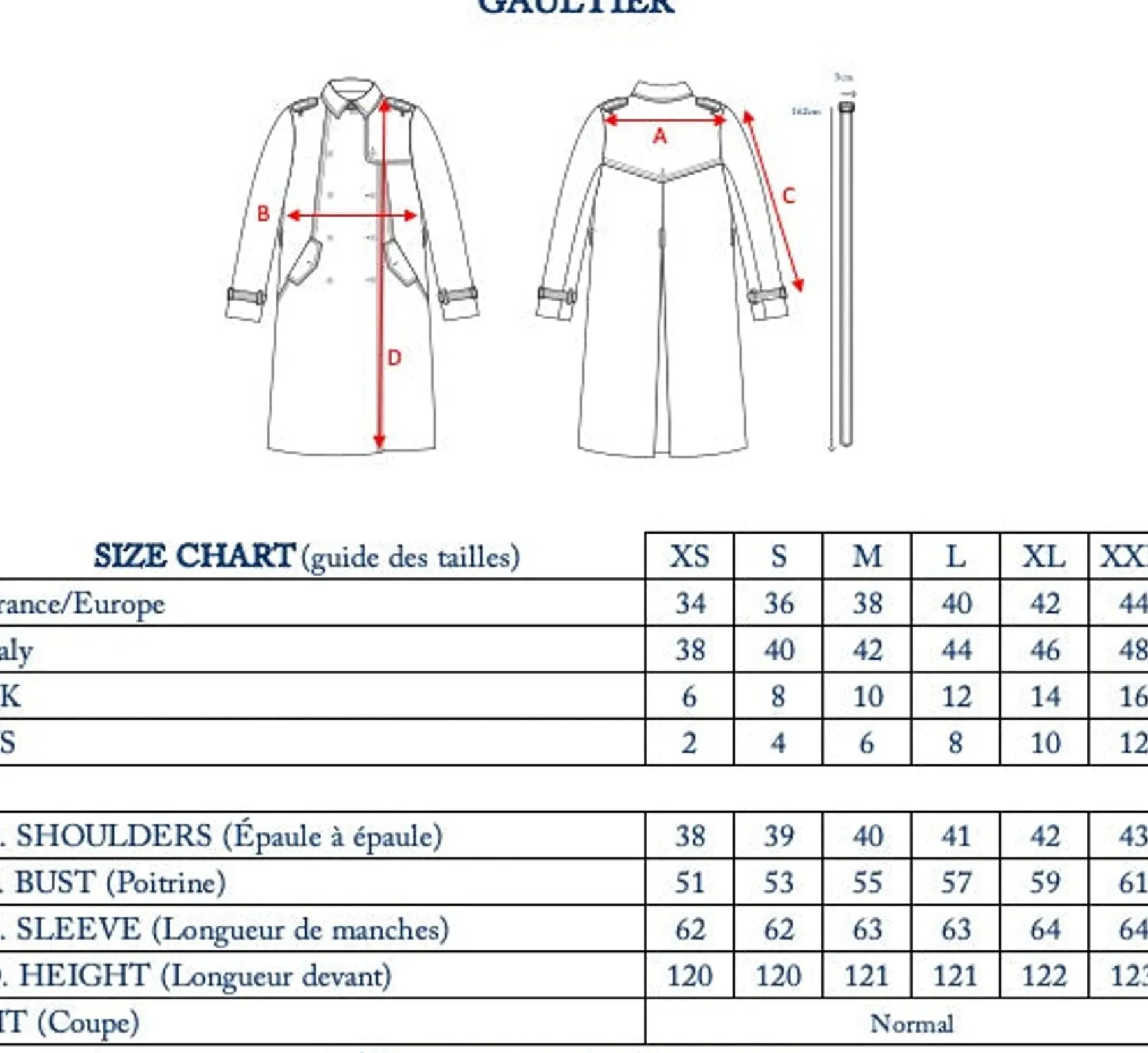 Add a timeless piece to your wardrobe with this splendid Gaultier trench coat. Its classic, timeless cut is enhanced by beige, the symbol of Parisian chic. We recommend going up a size in your wardrobe.