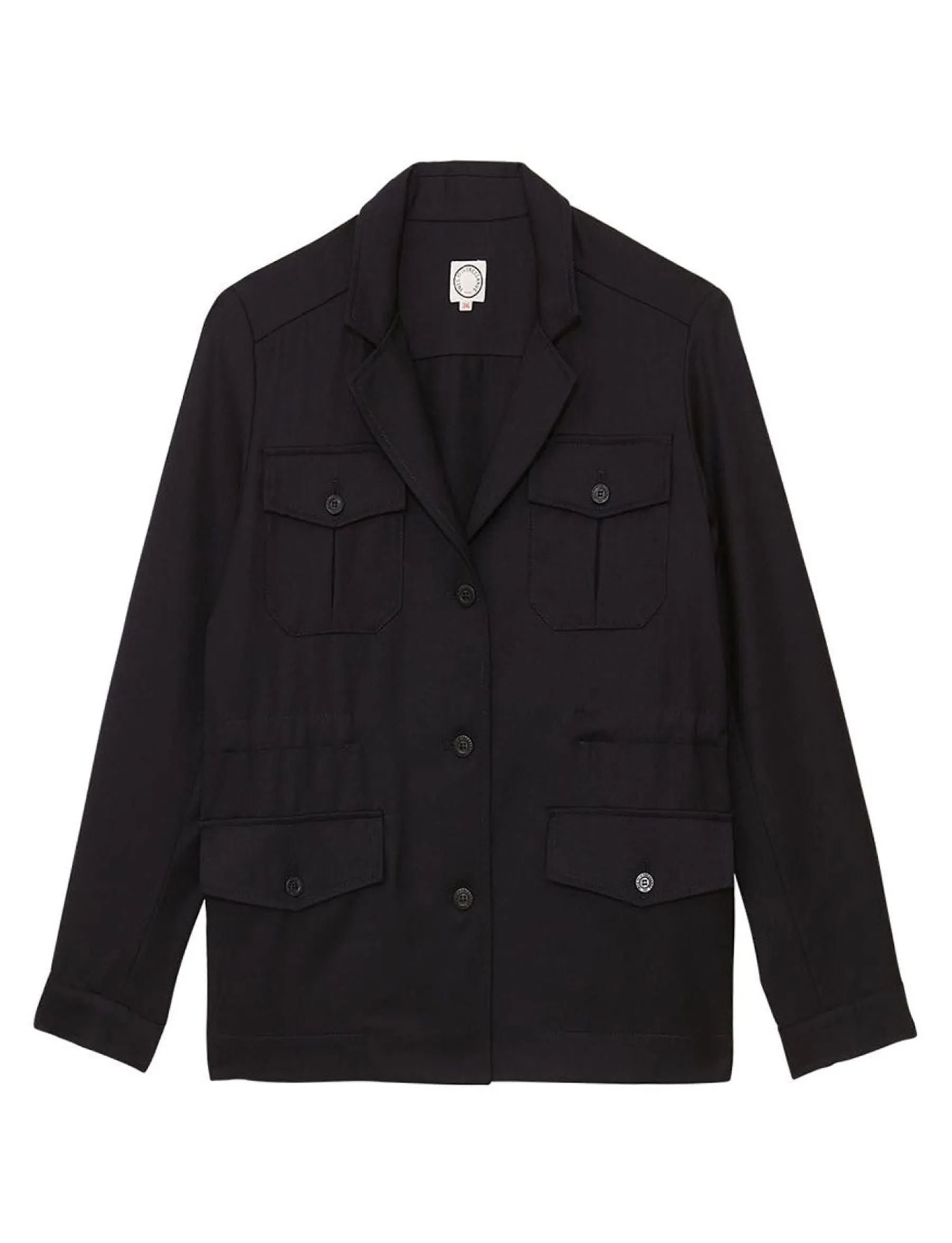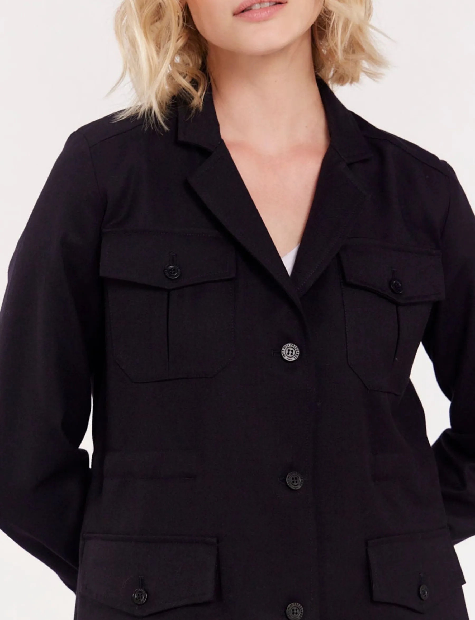 Fashion Ines de la Fressange Paris Midnight blue wool Flipper Saharienne