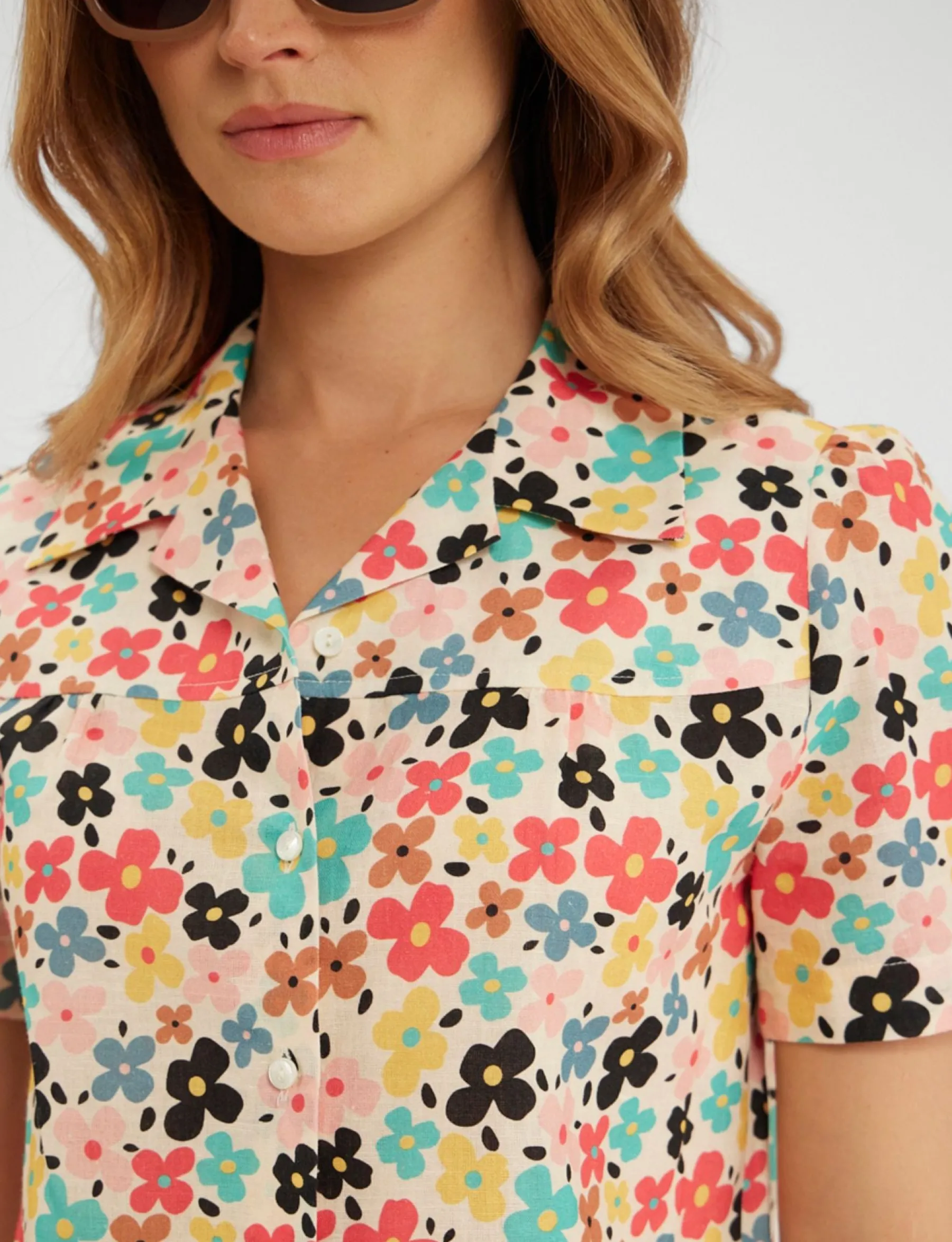 The Constance short-sleeved blouse is a must-have for summer. A real essential, you’ll find a thousand occasions to wear it, so all you have to do is choose yours. This season it comes in a floral print, in a linen-cotton blend, for a summer of comfort, lightness and elegance.