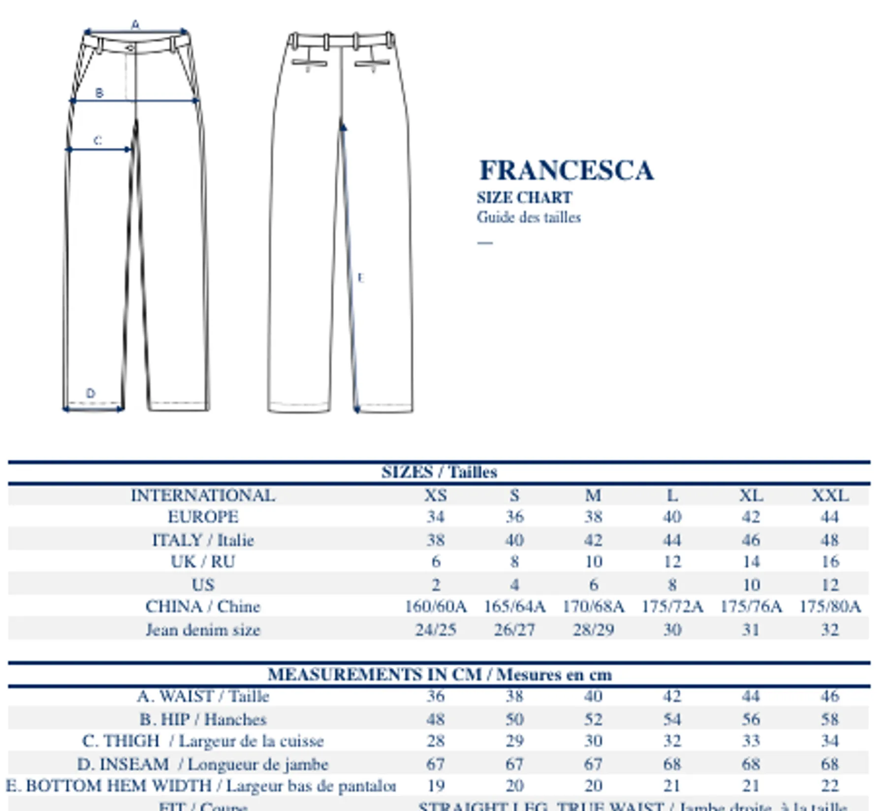 | Size | 34, 36, 38, 40, 42, 44 |