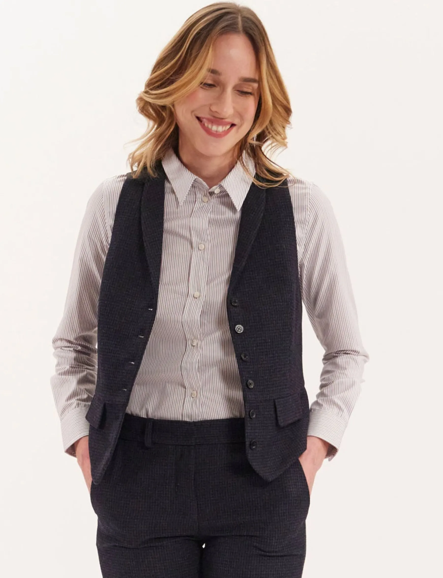 Ines de la Fressange Paris brings you the elegant Robinson waistcoat, a distinguished piece that’s back in fashion.