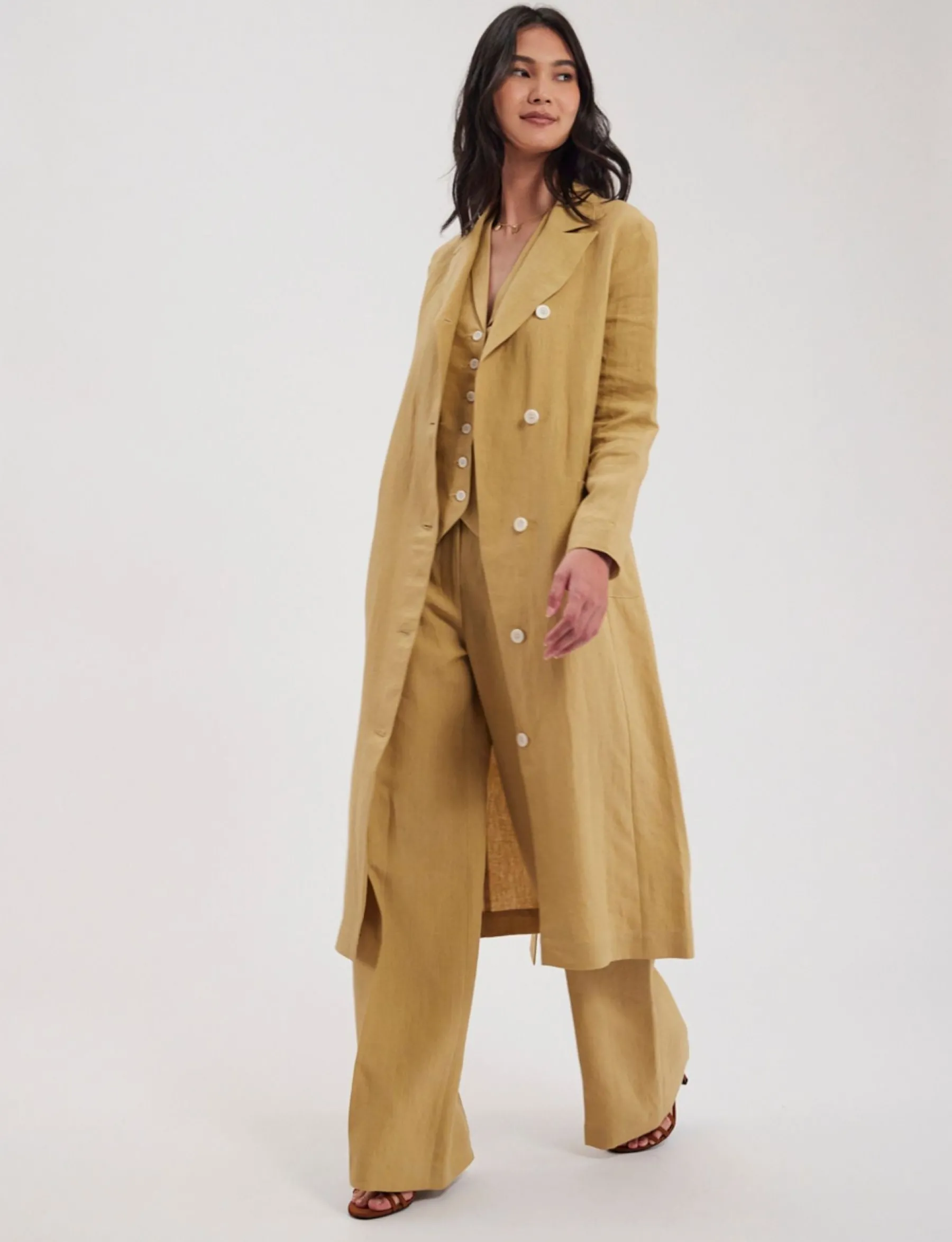 The Mia Dress is a superb 100% linen dress with a straight, slightly flared trapeze cut. Inspired by a tench, it can be worn layered over a blouse, for example. It’s a remarkable piece, as comfortable as it is easy to wear, suitable for many silhouettes, with a very fashionable elegance.