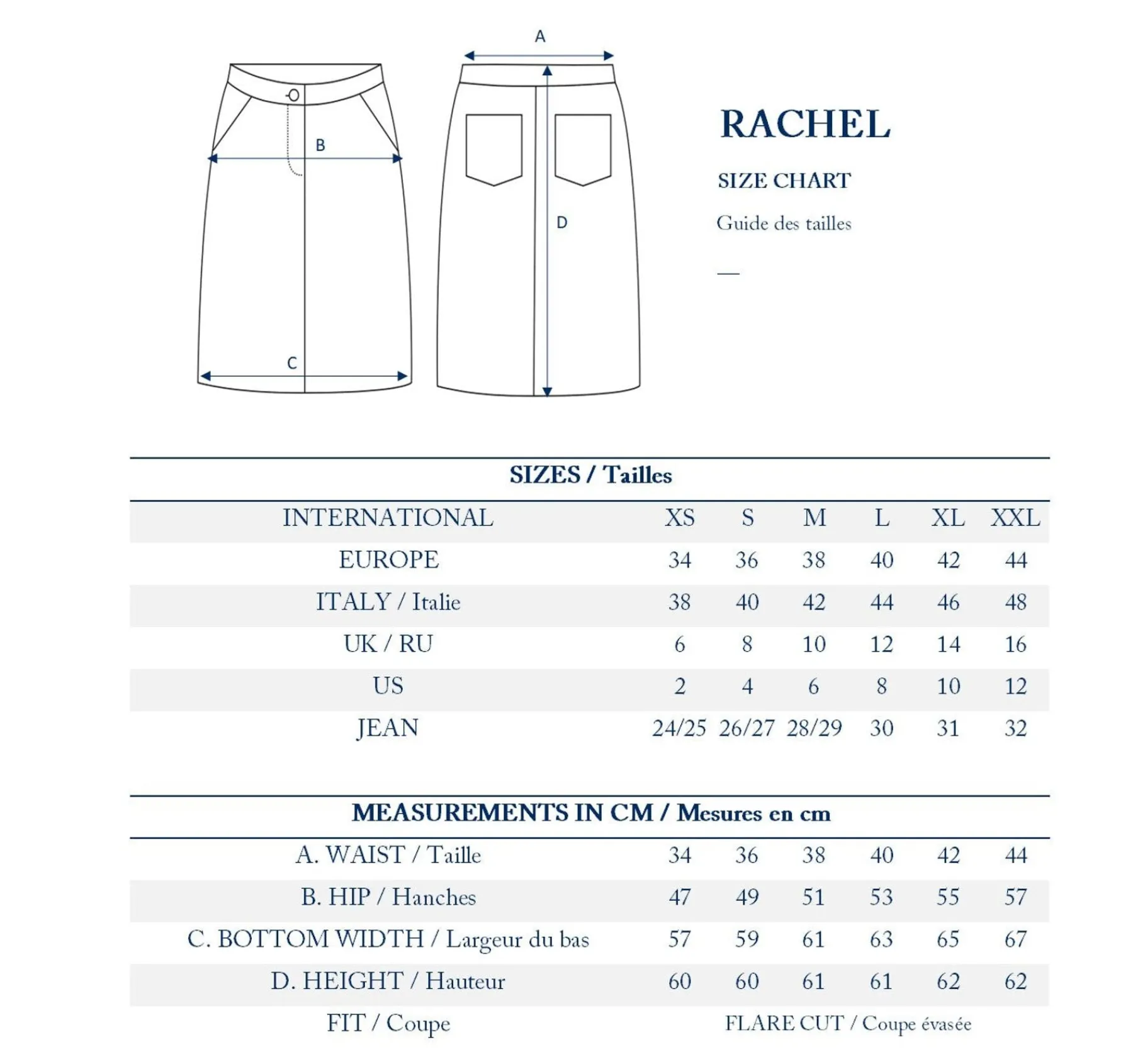 The new Rachel skirt is like a dream, with its elegant trapeze shape, stylish details and topstitching combined with a comfortable fabric that makes it ideal for everyday wear.