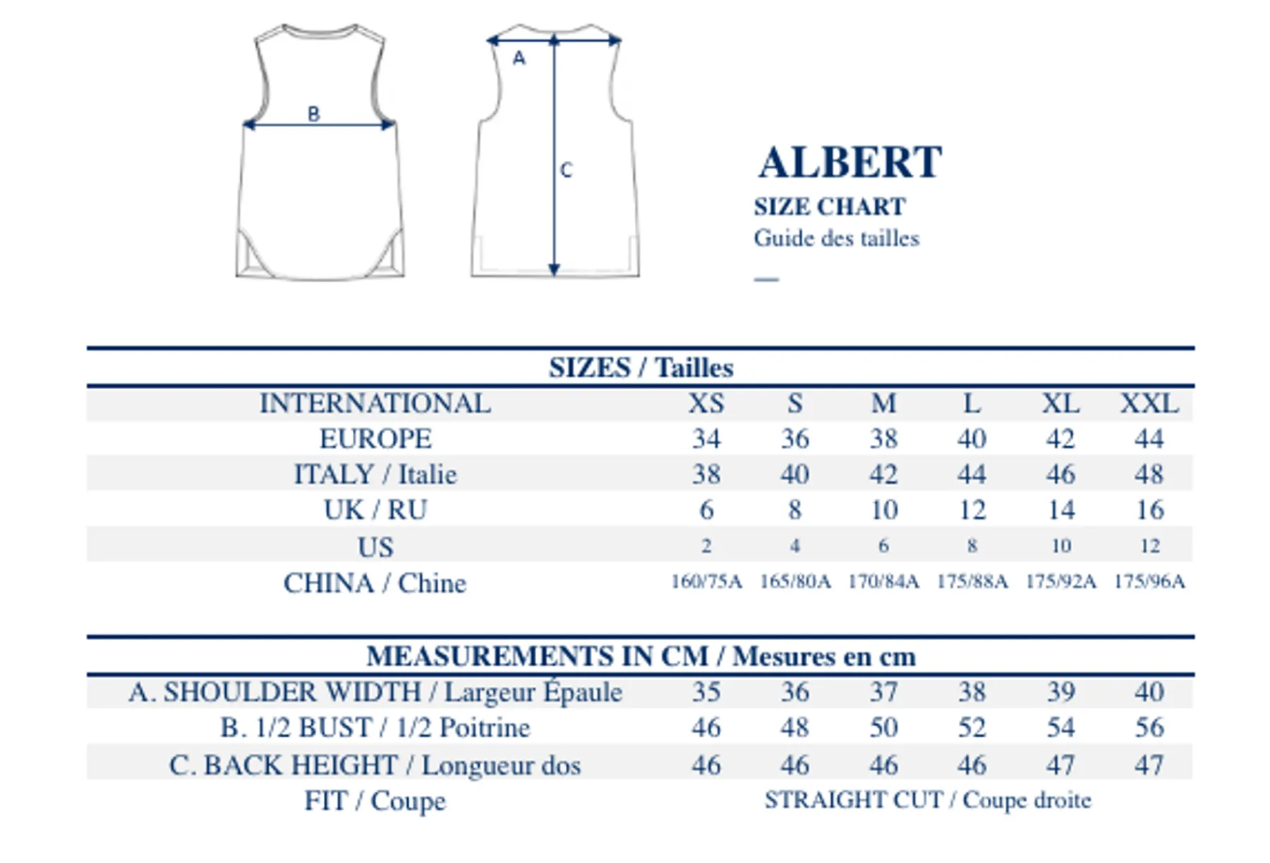 | Size | 34, 36, 38, 40, 42, 44 |