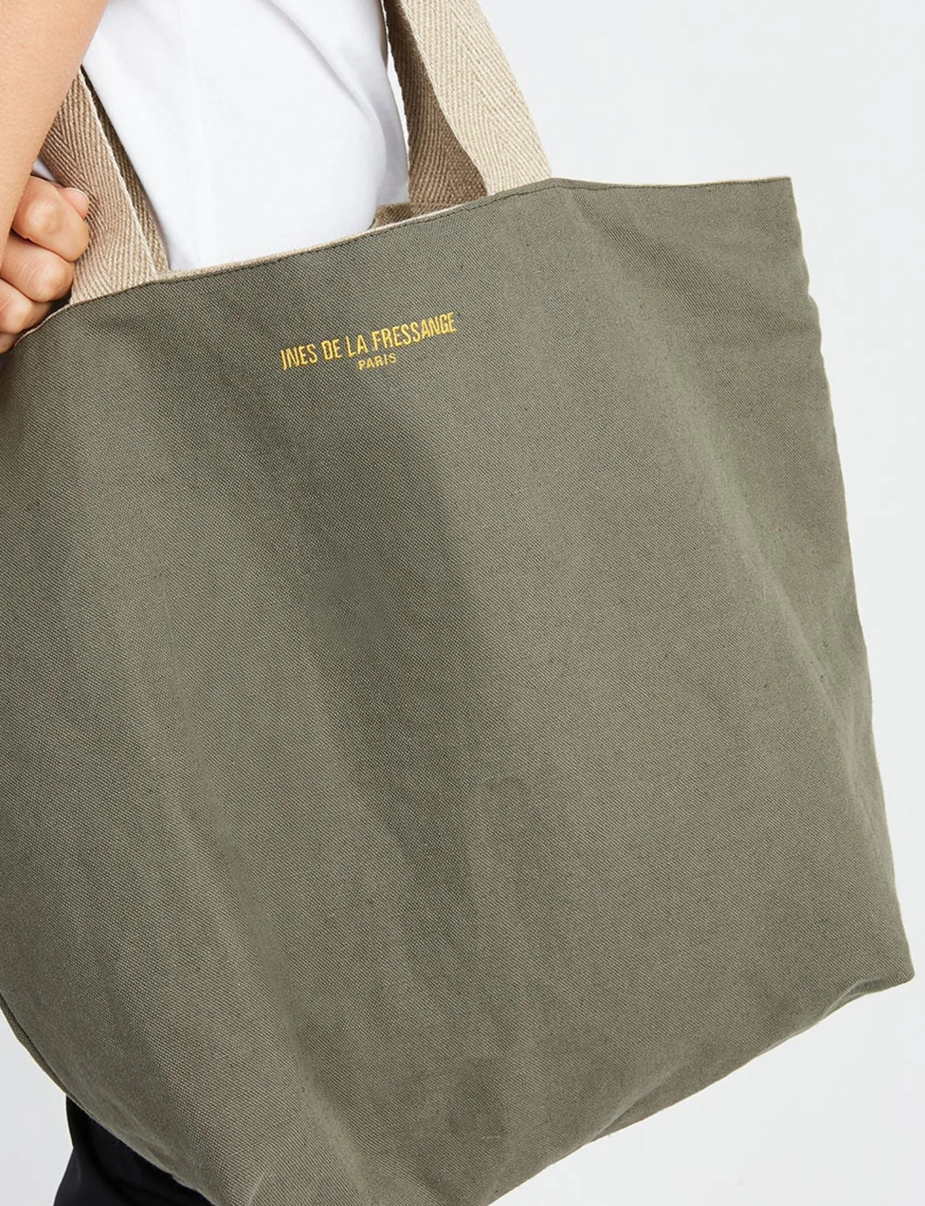Ines de la Fressange Paris has a new tote bag for the season. The Lila tote bag is ideal for taking with you wherever you go! Its medium to large size means you can carry everything you need. The Lila Kaki tote bag can be worn with all your outfits, as it is reversible.