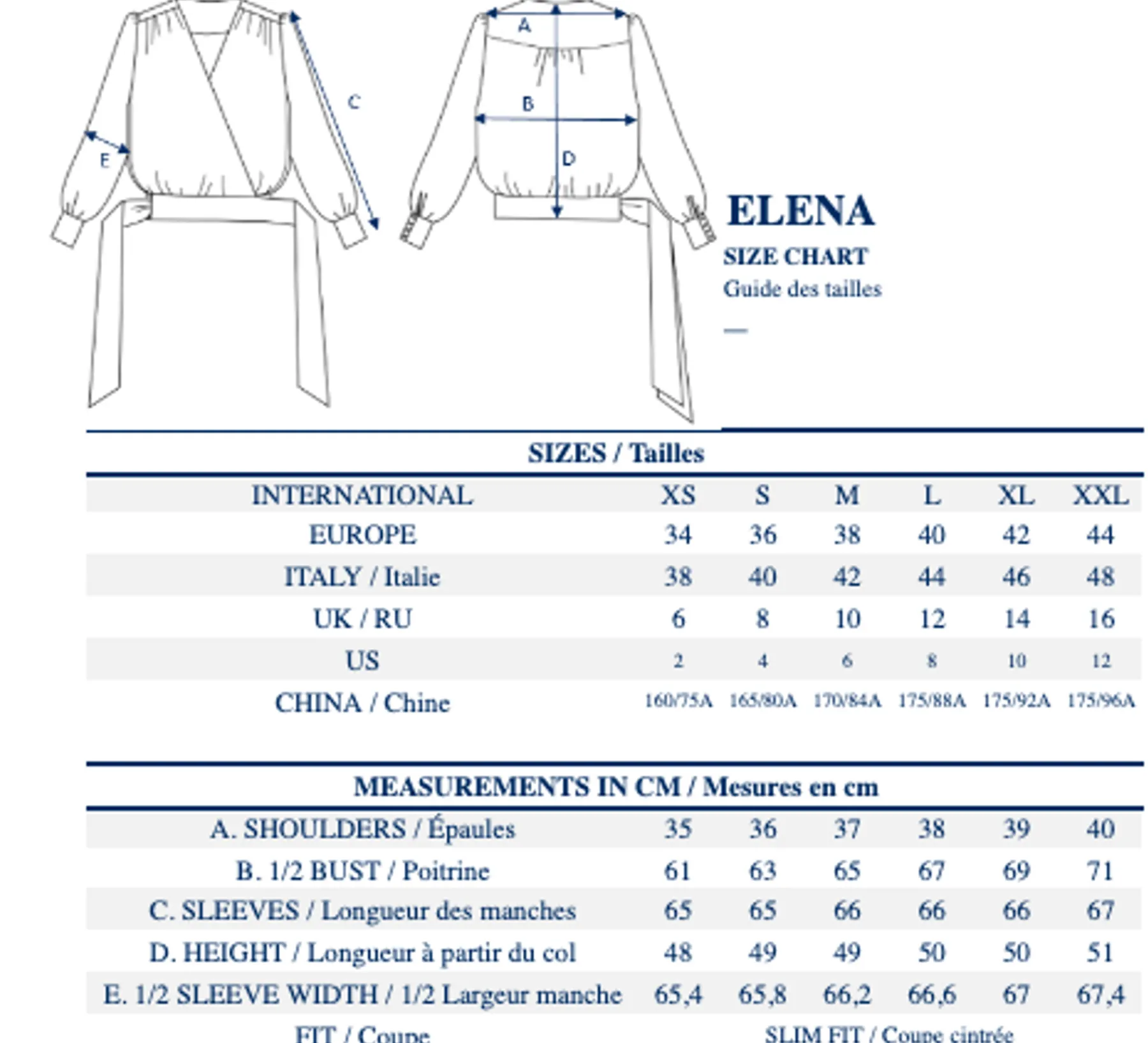 | Size | 34, 36, 38, 40, 42, 44 |