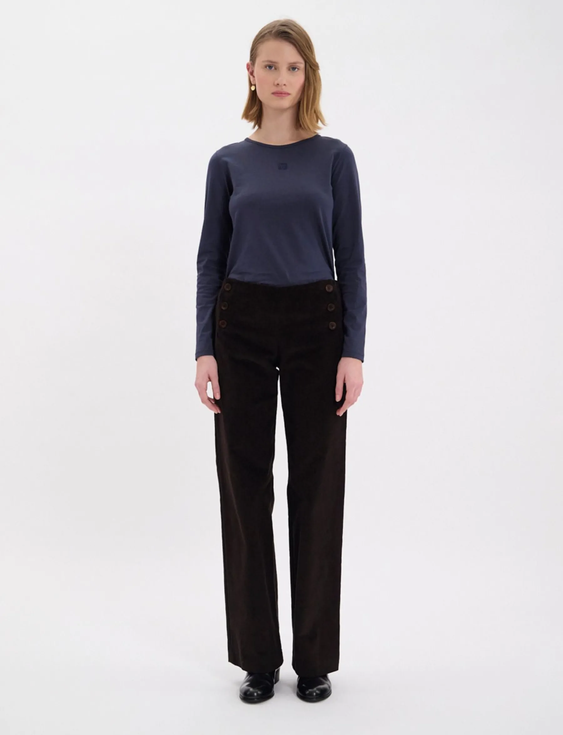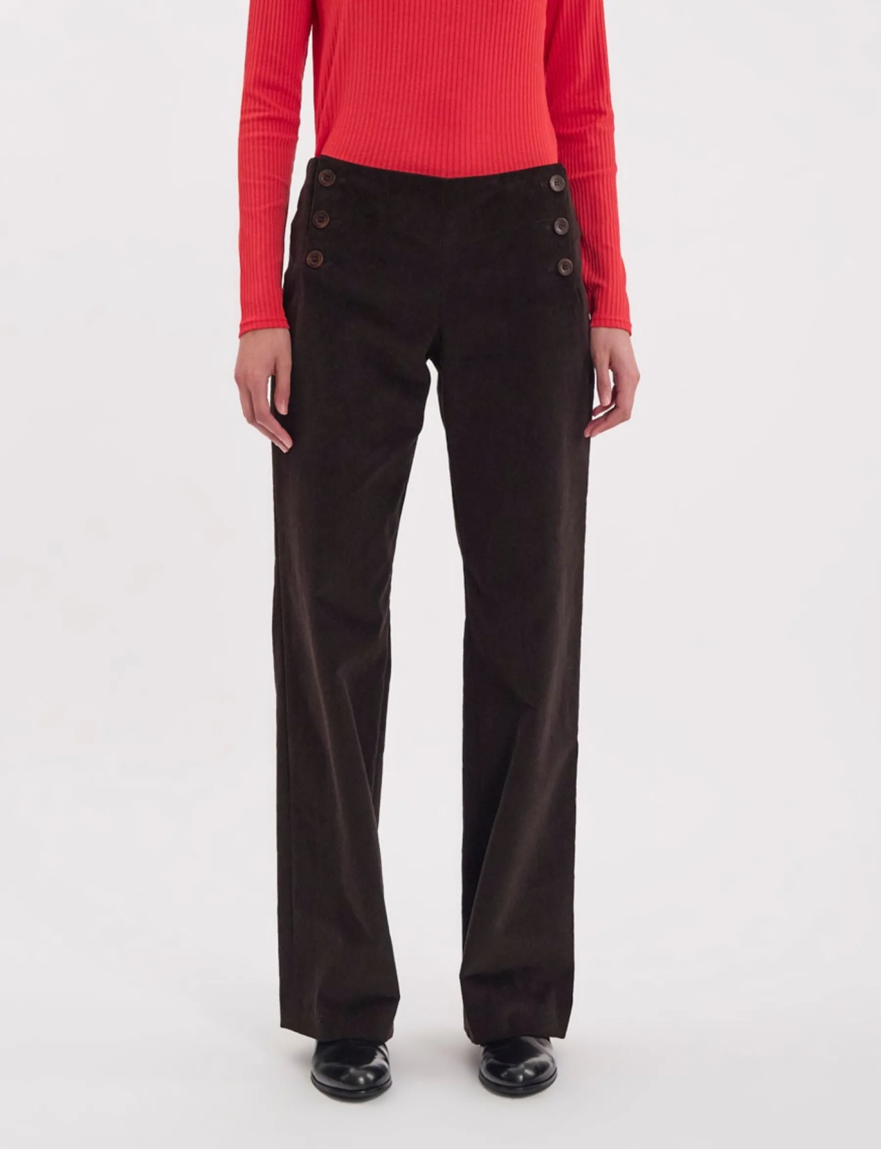 Outlet Ines de la Fressange Paris Gabriel trousers in brown milleraies velvet