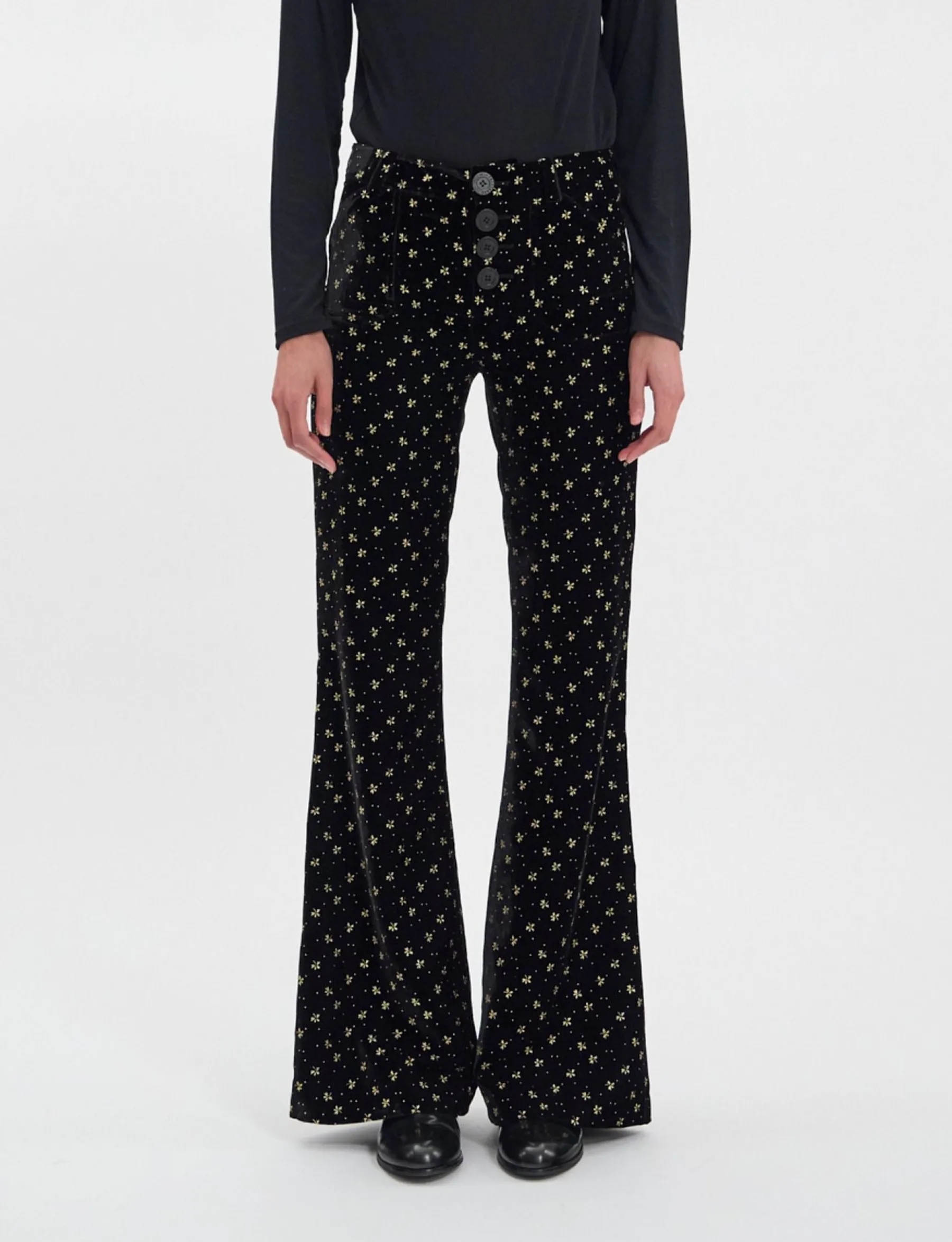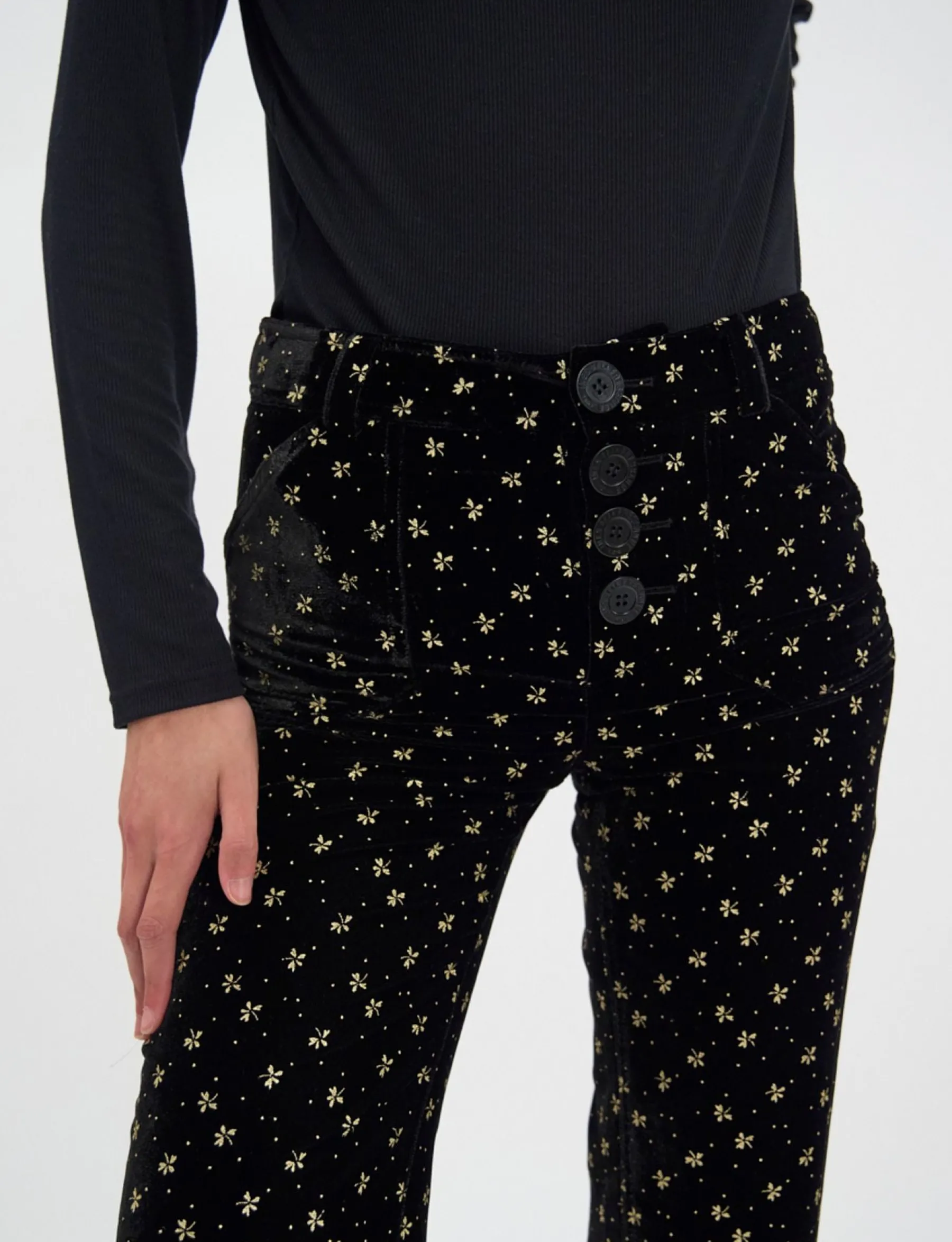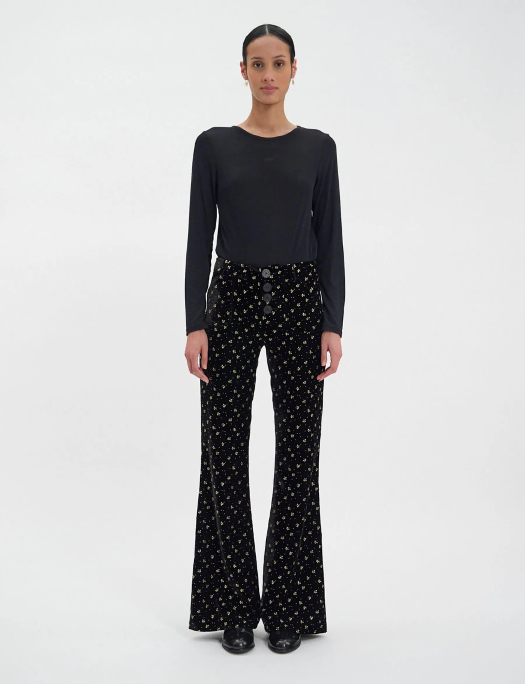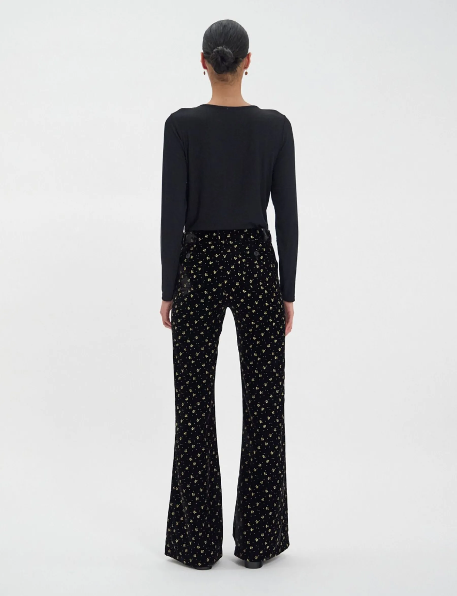Shop Ines de la Fressange Paris Charlotte trousers in smooth black velvet with gold print