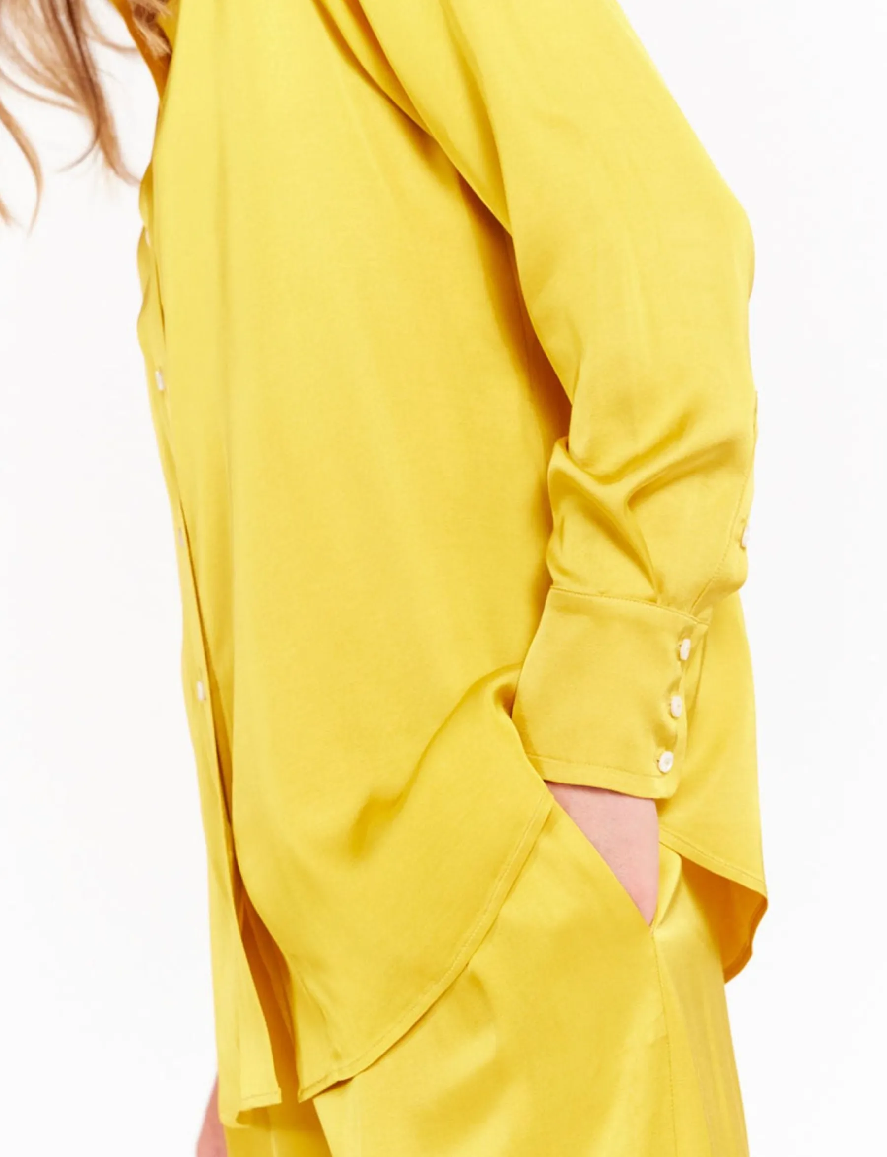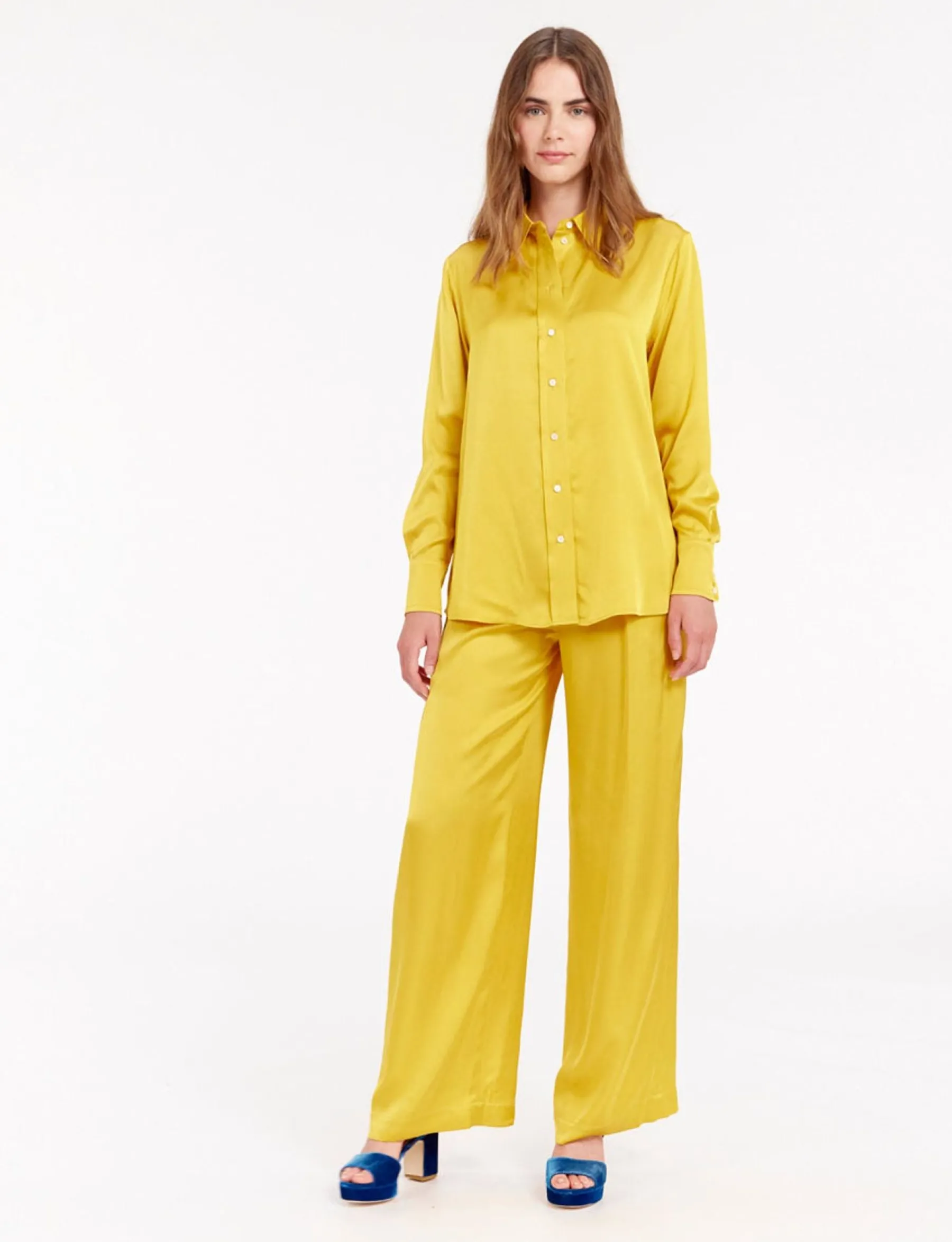 Shop Ines de la Fressange Paris Maureen yellow buttercup satin shirt