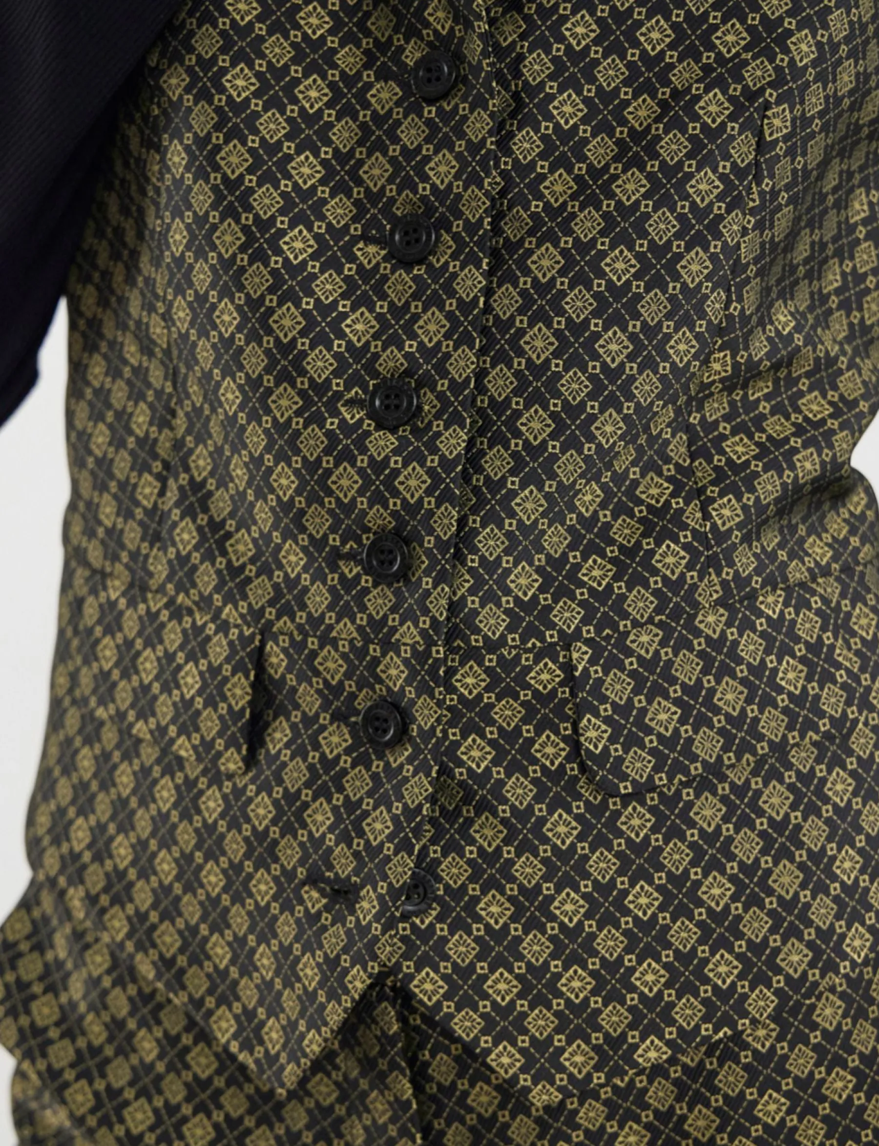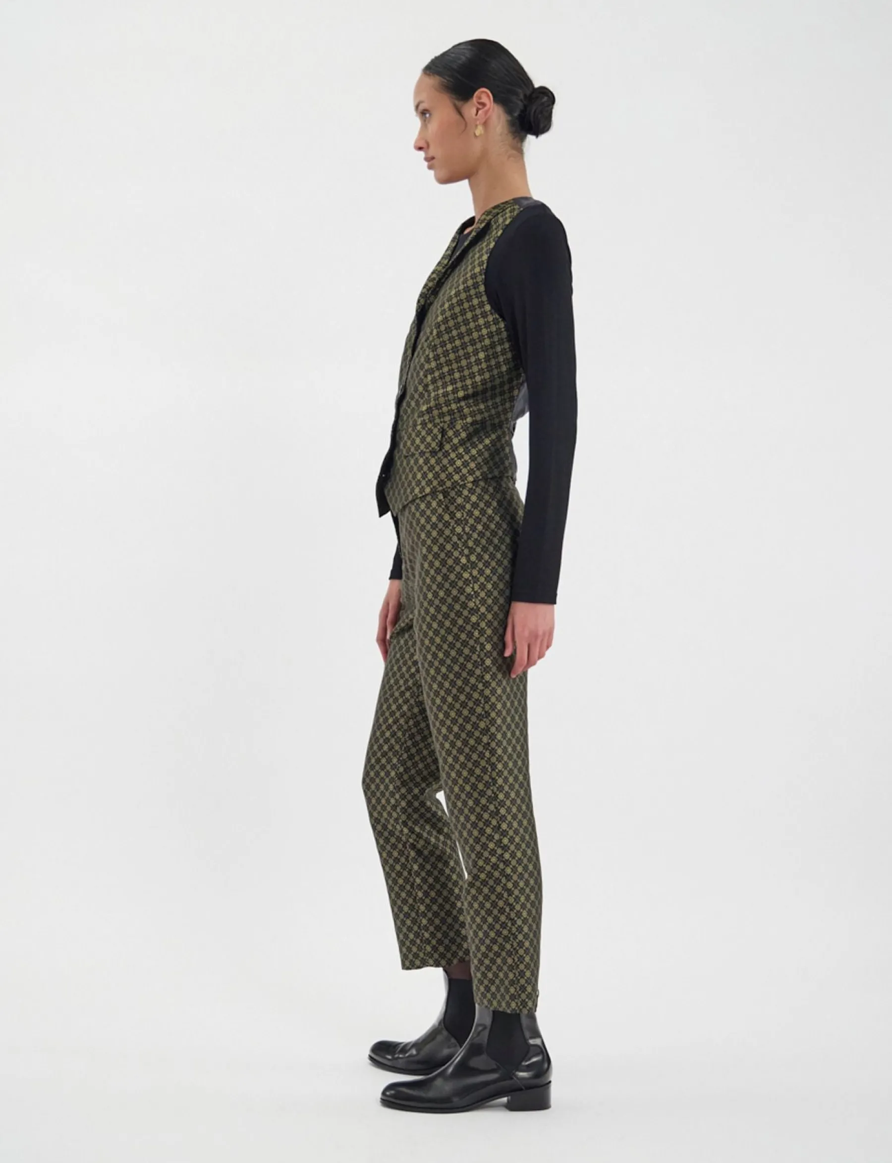 Shop Ines de la Fressange Paris Robinson waistcoat in black and gold jacquard weave