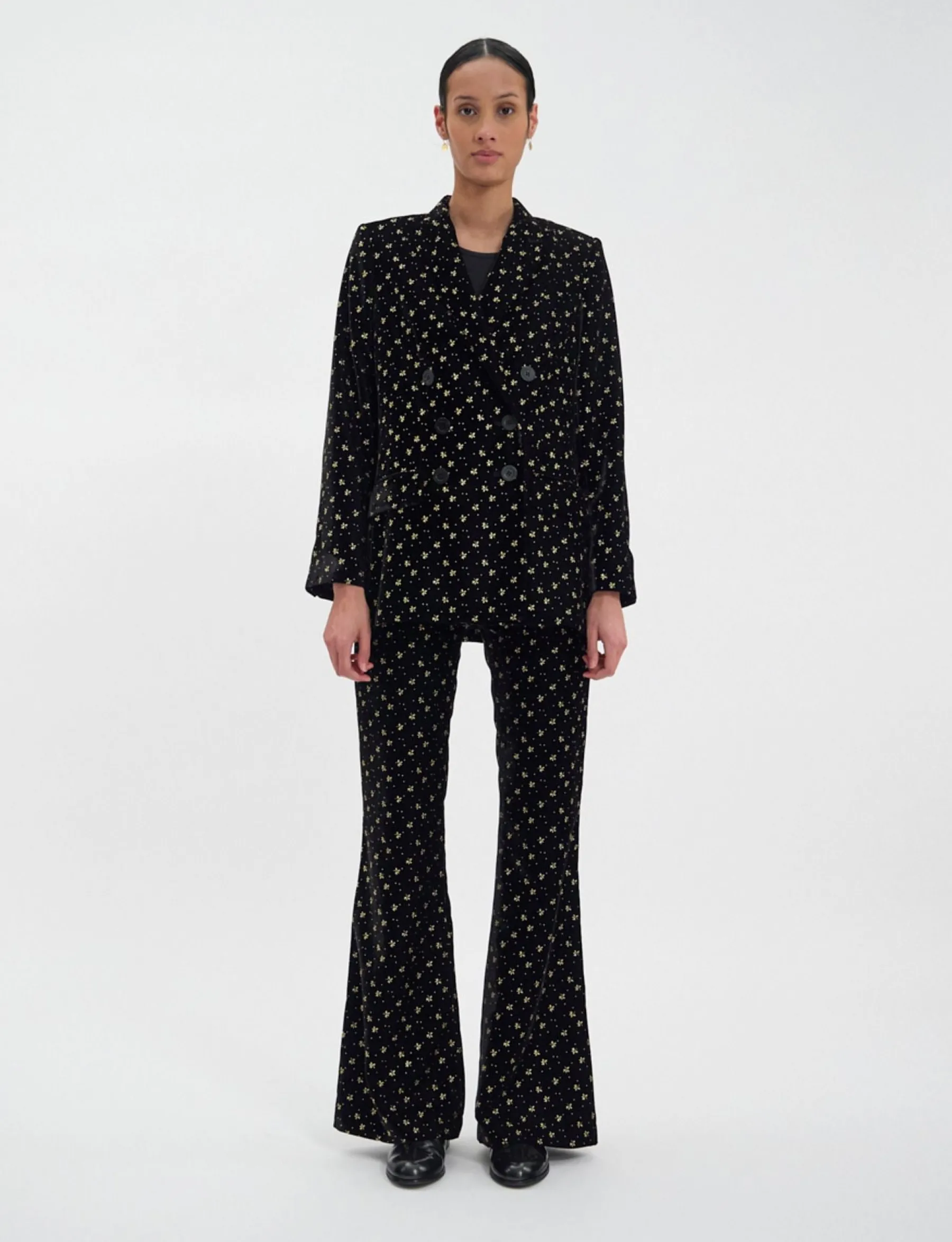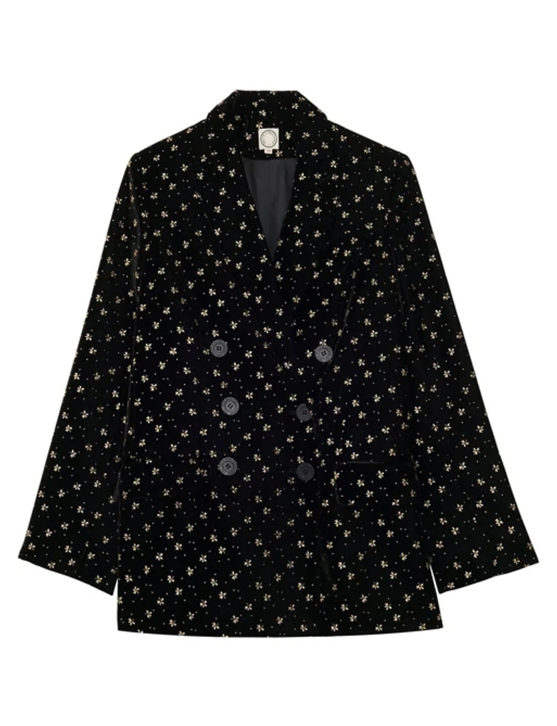 Store Ines de la Fressange Paris Ezio jacket in black smooth velvet with gold print