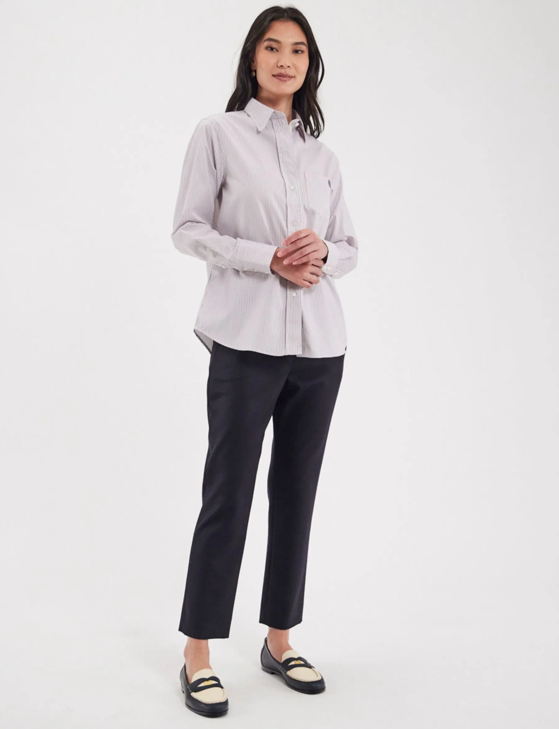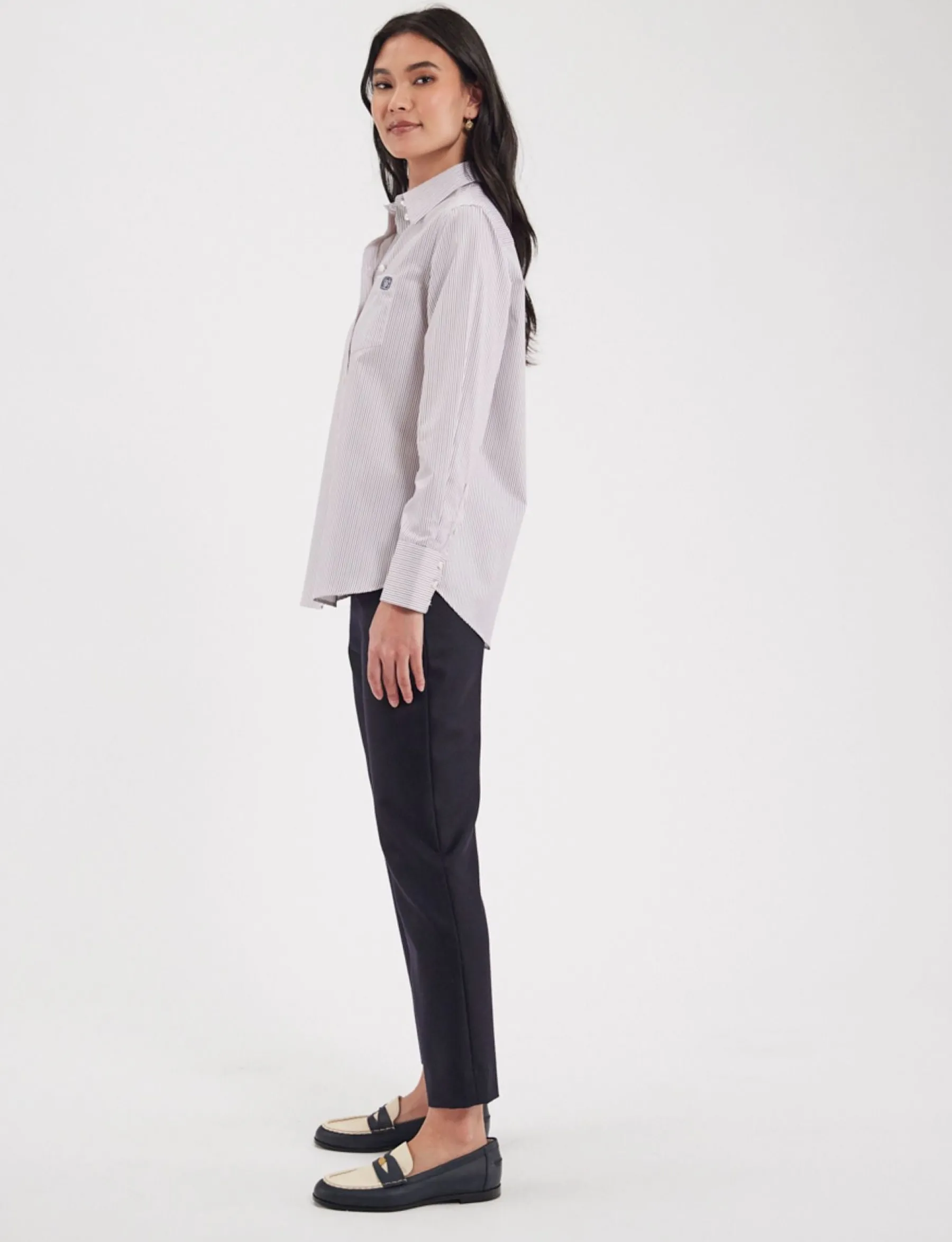 The Maureen shirt, emblematic of the House, with its easy, timeless straight cut will add an elegant touch to all your outfits and complement your wardrobe perfectly. The small oak leaf embroidery on the chest is a detail that adds to its personality. It’s just as suited to formal wear as it is to casual wear paired with raw or light denim jeans.