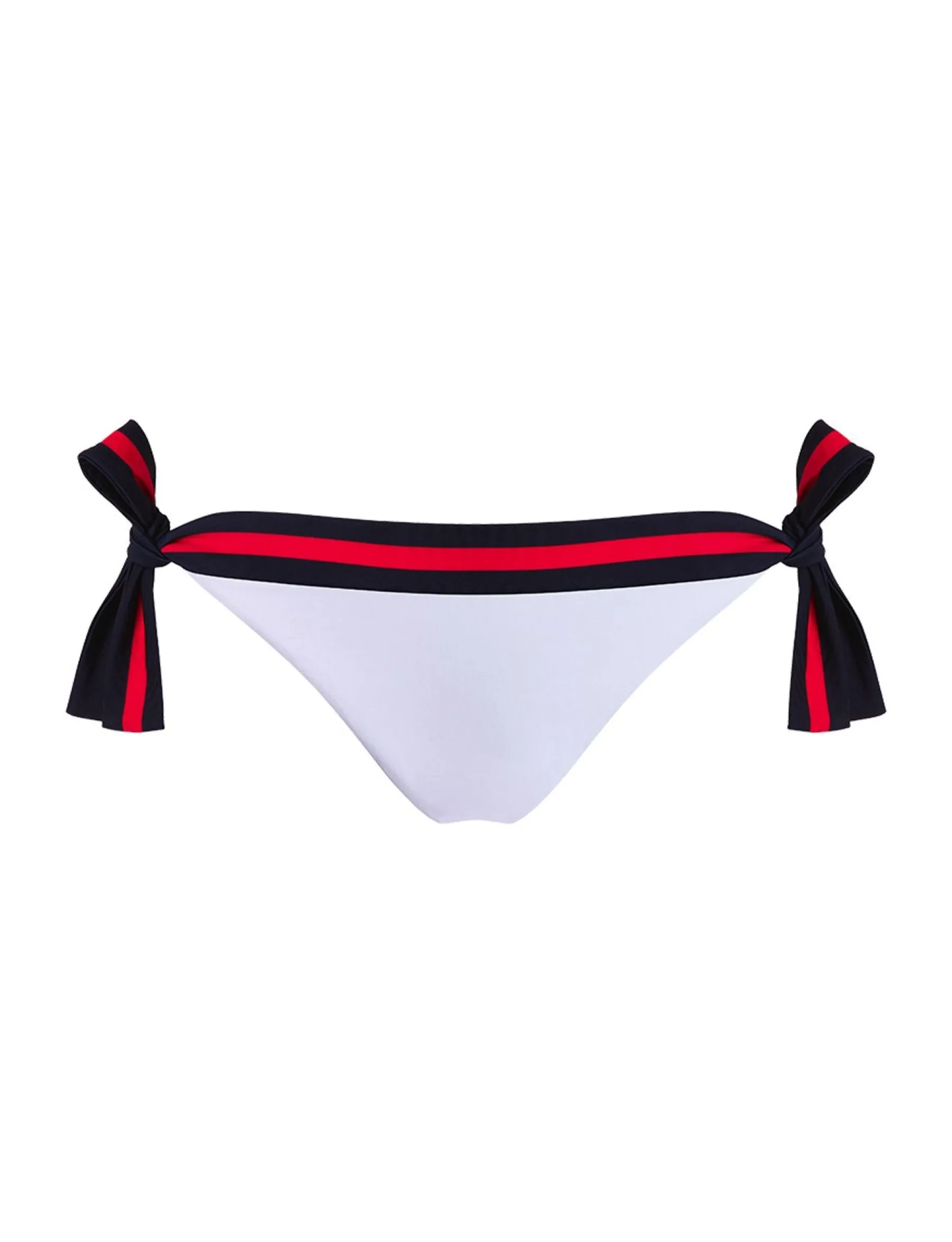 Dedicated to the pleasures of the sun and the beach, the new capsule collection Vilebrequin and Ines de la Fressange Paris brings together the two Houses and reinvents the elegance of a French-style holiday, whether in the city or by the sea. Flamme is a mini bikini bottom that ties at the sides. It has an elasticated waistband and is fully lined. You’ll love its elegant design.