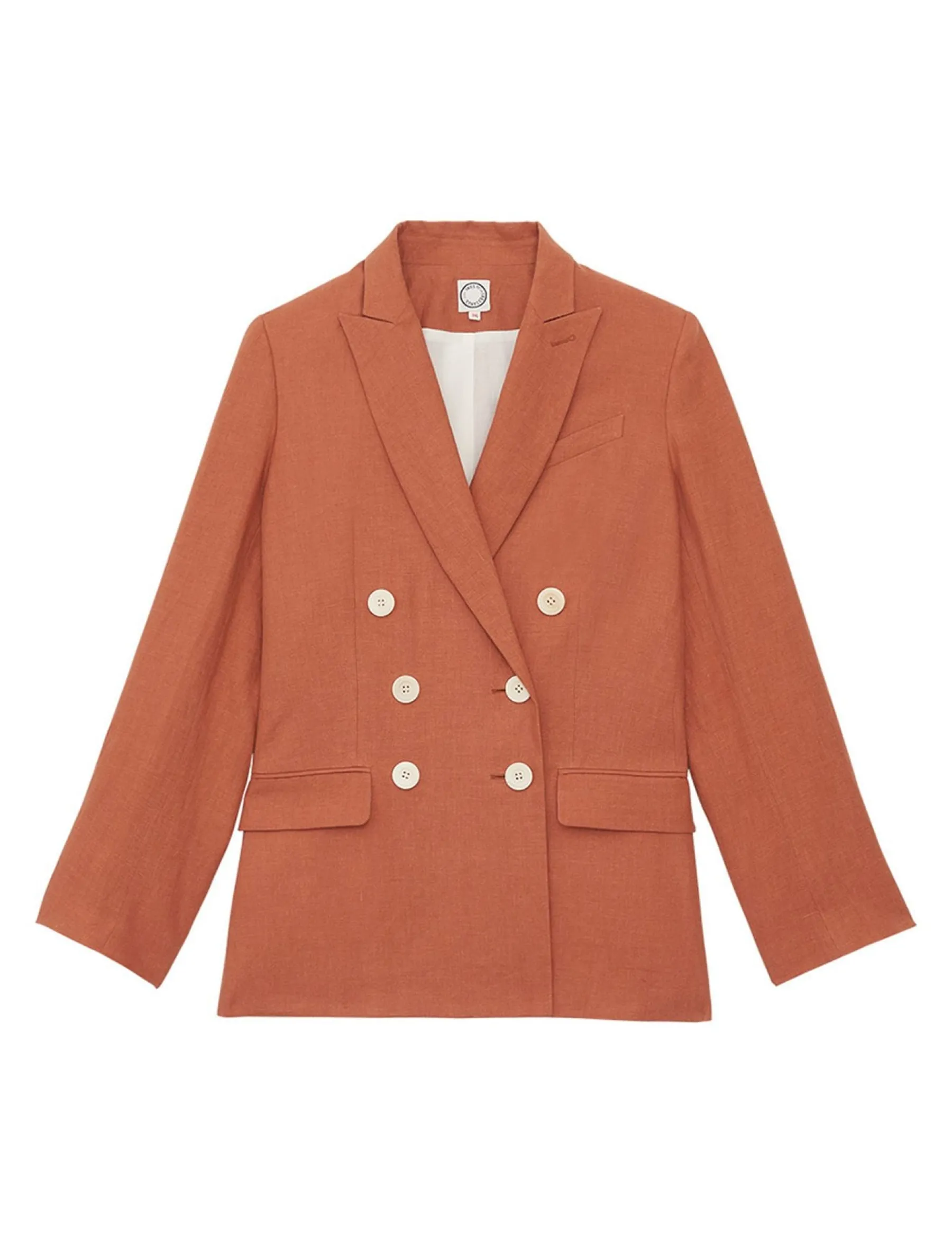 Discover Ezio , a very elegant double-breasted jacket that can be worn open or closed, symbolising Parisian chic. This version is made from linen, the noblest of materials.