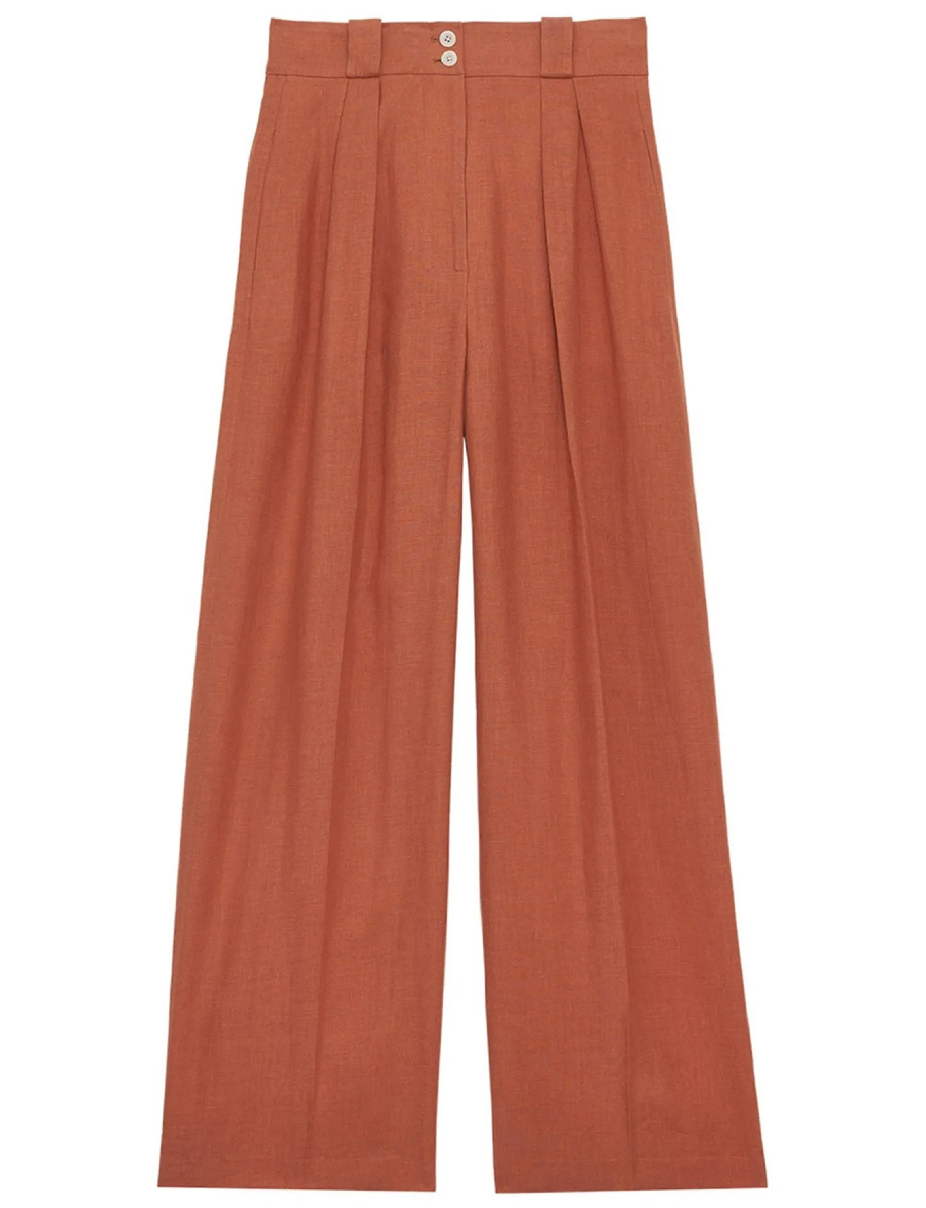 The Marlène trousers are a best-selling model from Ines de la Fressange Paris. Their high waist, pronounced pleats, loose fit and finishing give them a distinctive, easy-to-wear look. They are available here in 100% linen, the noblest of materials