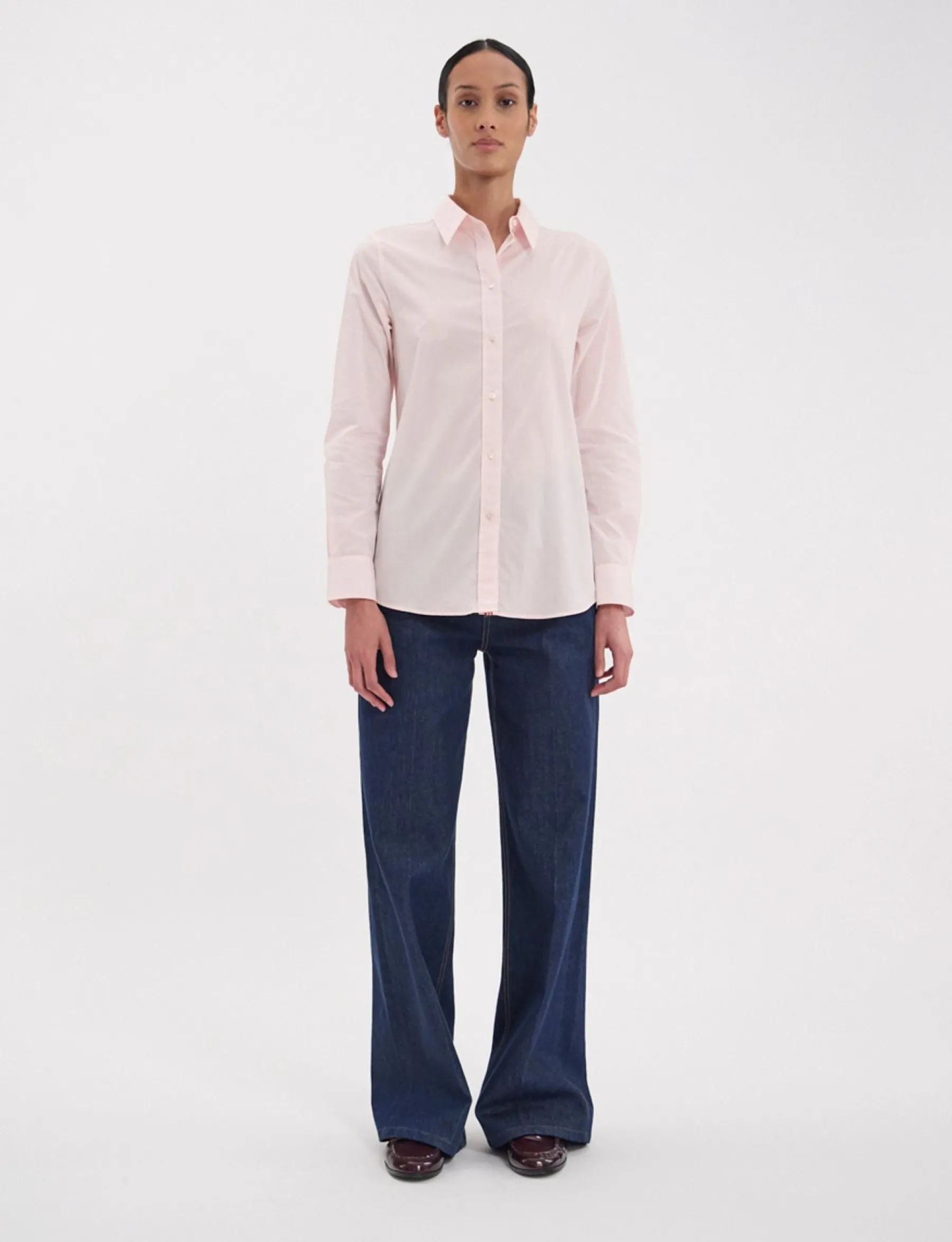 The Martin shirt is a must-have for every Parisienne, and Ines’ favourite… A timeless version in pale pink cotton, ver…