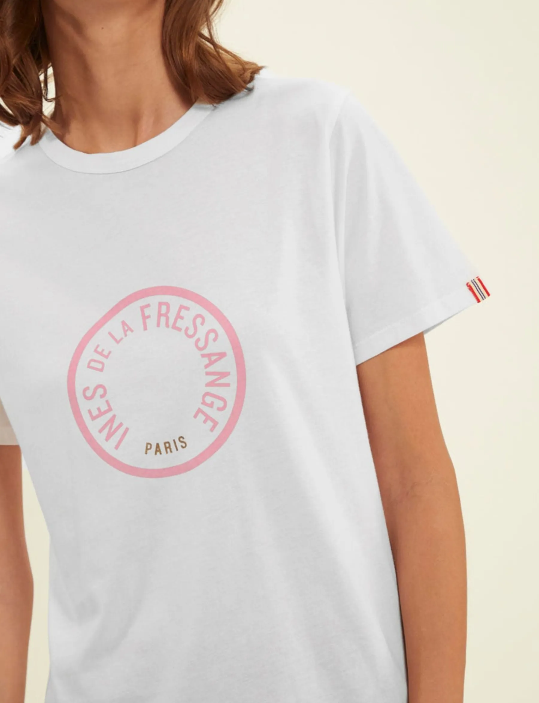 Online Ines de la Fressange Paris Oscar white logo pink T-shirt