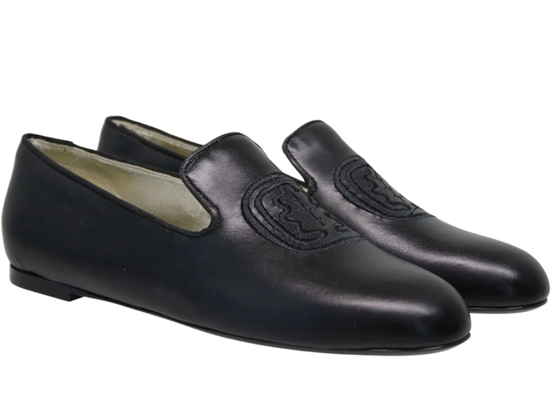 Outlet Ines de la Fressange Paris Callie embroidered loafer in black leather
