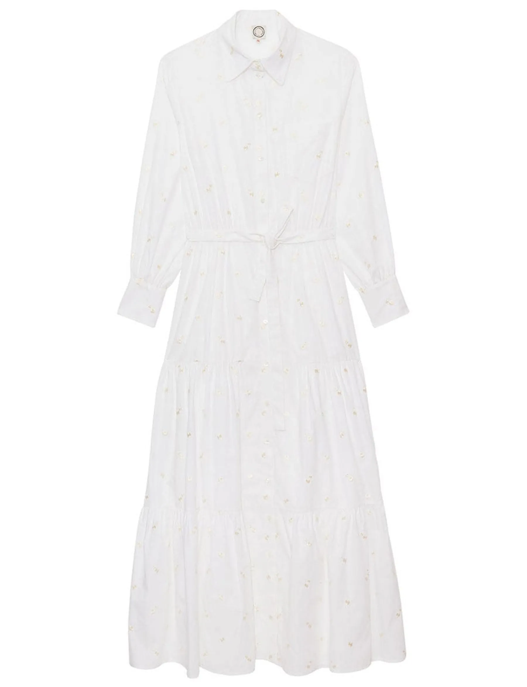 The Léna dress is long and elegant, both sophisticated and bohemian with its ruffles. It will make you look good wherever you wear it, and has the power to put you in a good mood. This version, ideal for sunny days, is embellished with subtle, refined tone-on-tone embroidery.